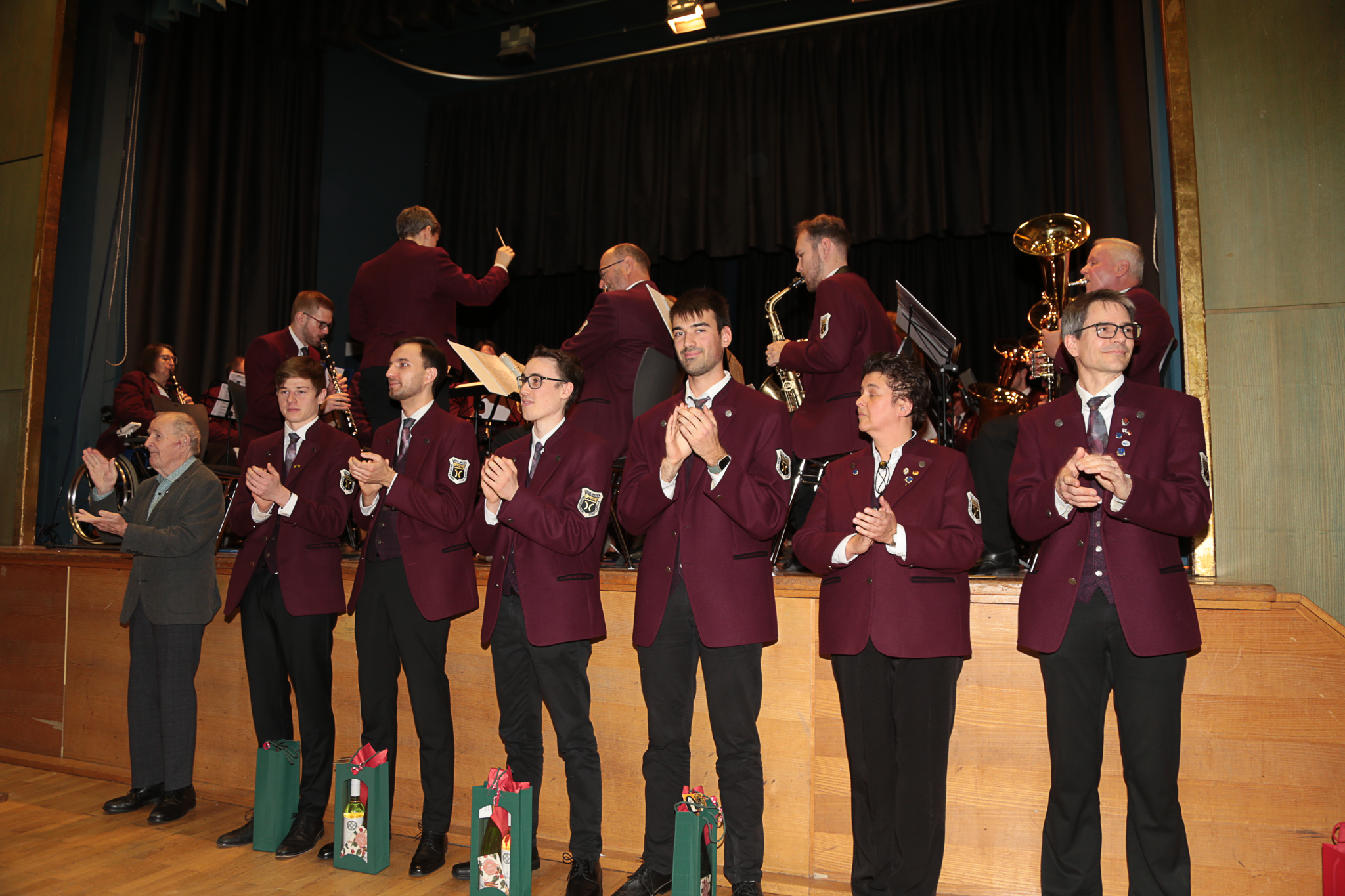 Danach kam mit Leoni Hoffmann die zweite Dirigentin auf die Bühne – und damit auch die Jugendkapelle. Nach einigen Weihnachtsliedern und Titel wie „Lord of the Rings“ übernahm der Schirmherr der Jugendkapelle Dirk Oestringer das Geschehen und verteilte die Geschenke an die Jugendkapelle. Außerdem wurden noch die Musiker belohnt, die die höchste Probenbeteiligung aufweisen konnten.