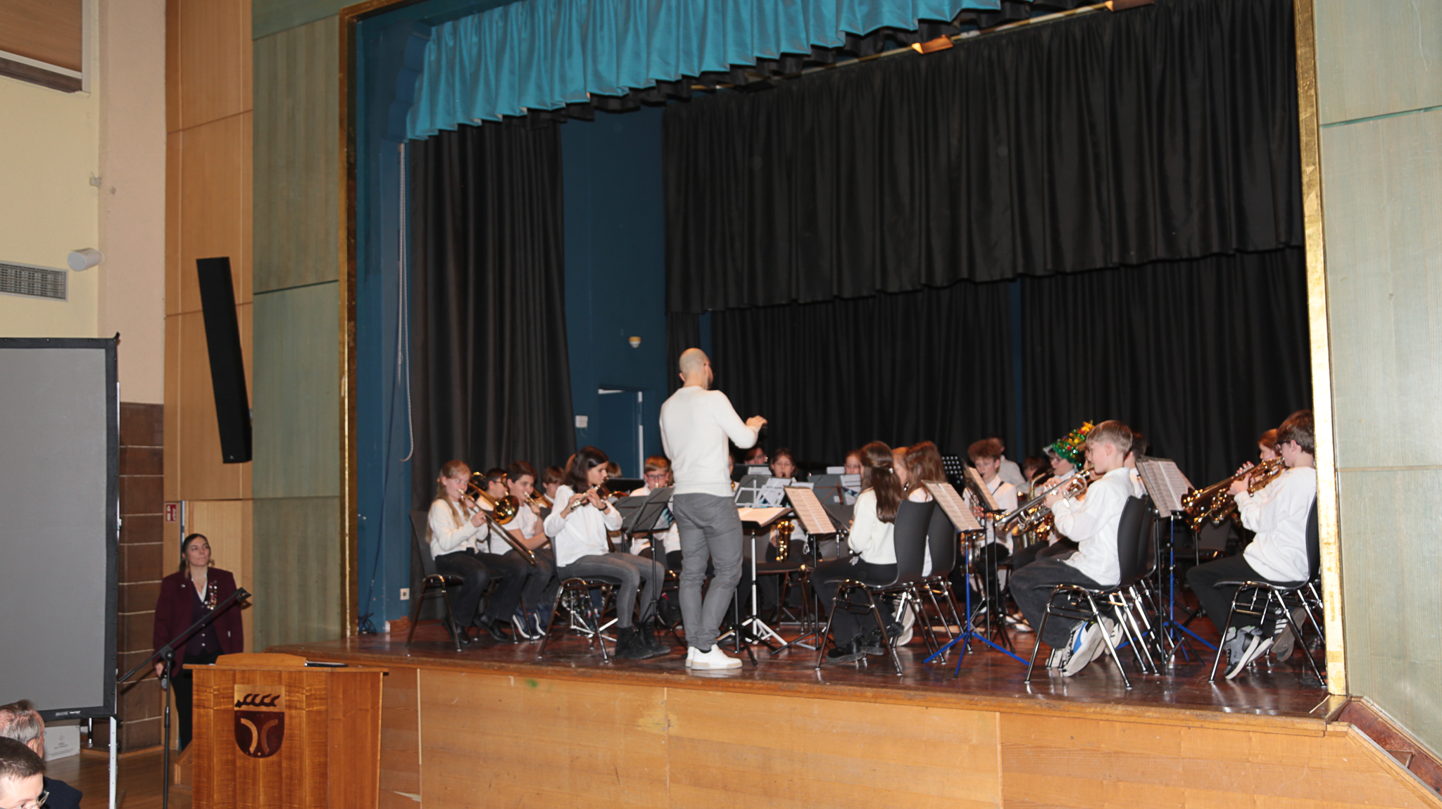 Traditionell wurde den Jubilaren zu Ehren der Marsch „Alte Kameraden“ gespielt. Im Anschluss wurde noch der „Geburtstagsmarsch“ für unser „Geburtstagskind“ Albrecht Sellner gespielt. In der Folge nahm die Juniorband unter der Leitung von Nikolai Jakesch auf der Bühne Platz und spielten einige Weihnachtslieder auf.