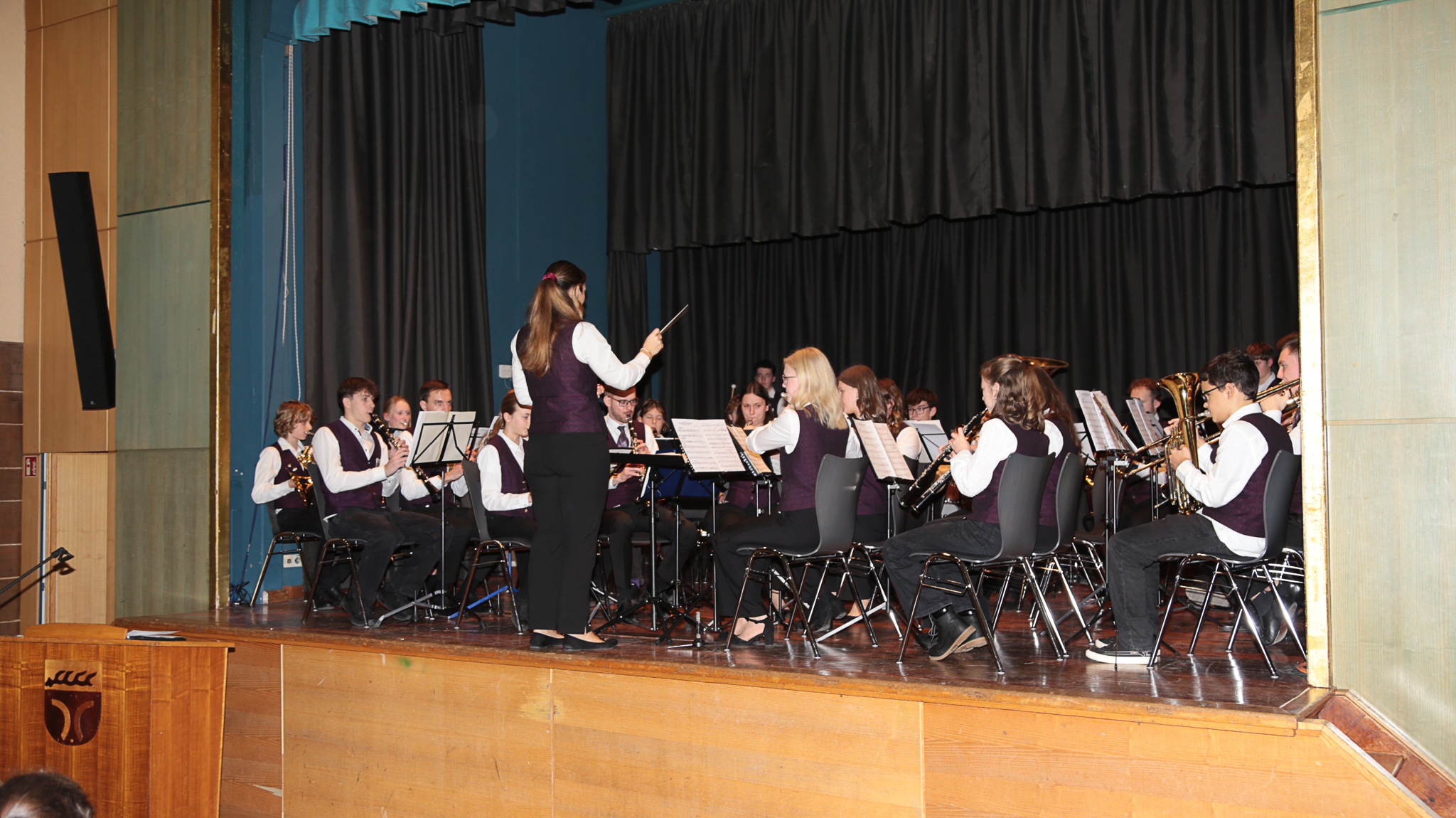 Danach kam mit Leoni Hoffmann die zweite Dirigentin auf die Bühne – und damit auch die Jugendkapelle. Nach einigen Weihnachtsliedern und Titel wie „Lord of the Rings“ übernahm der Schirmherr der Jugendkapelle Dirk Oestringer das Geschehen und verteilte die Geschenke an die Jugendkapelle. Außerdem wurden noch die Musiker belohnt, die die höchste Probenbeteiligung aufweisen konnten.