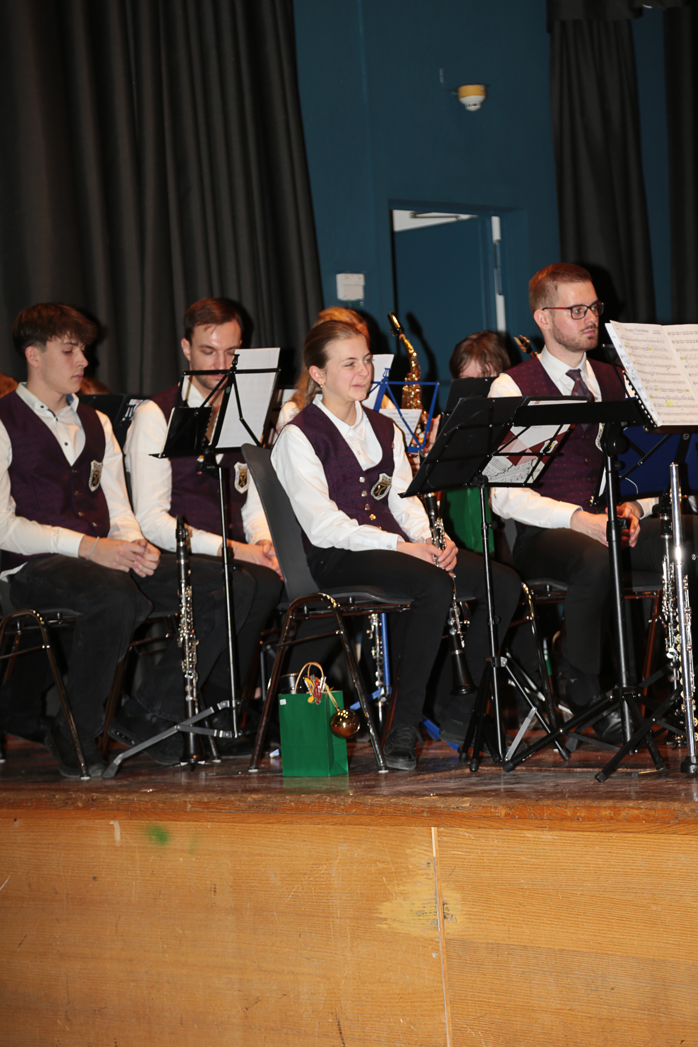 Traditionell wurde den Jubilaren zu Ehren der Marsch „Alte Kameraden“ gespielt. Im Anschluss wurde noch der „Geburtstagsmarsch“ für unser „Geburtstagskind“ Albrecht Sellner gespielt. In der Folge nahm die Juniorband unter der Leitung von Nikolai Jakesch auf der Bühne Platz und spielten einige Weihnachtslieder auf.