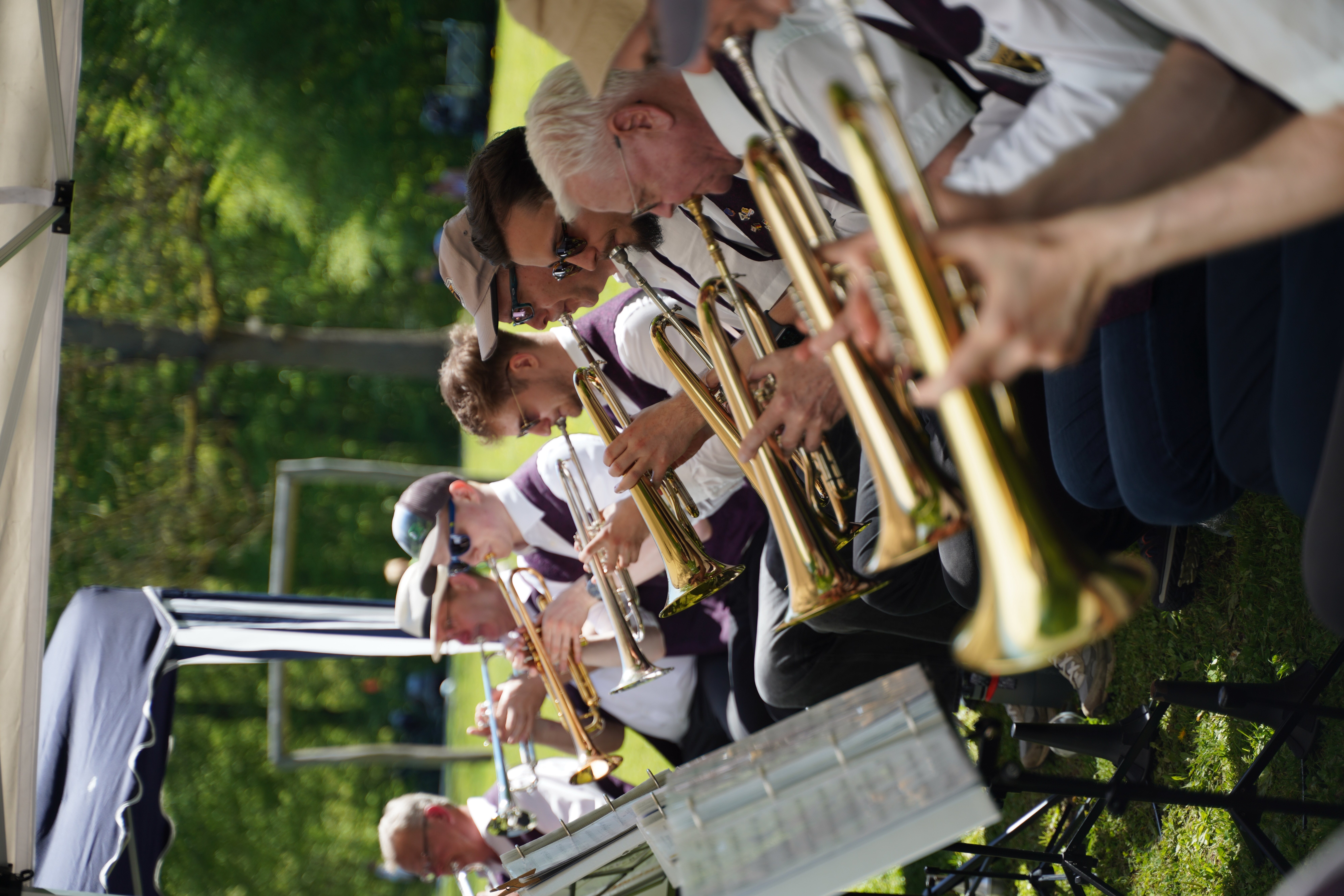 Na? Haben Sie es bemerkt? Korrekt, beide Kapellen des Musikvereins werden nun von Frauen dirigiert – so wie es der 1. Vorsitzende Matthias Widmann am diesjährigen Frühjahrskonzert angekündigt hat. Antonia Efinger hat die musikalische Eröffnung – und auch den Festausklang mit der Stadtkapelle geleitet. Unsere Jugendleiterin Leoni Hoffmann dirigiert die Jugendkapelle. Aber von vorne: Pünktlich um halb zwölf hat die Stadtkapelle den musikalischen Auftakt am Waldfest bei hochsommerlichen Randbedingungen gestartet. Passend mit dem Marsch „Die Sonne geht auf“. Im Anschluss nahm die Jugendkapelle Platz und führte die Unterhaltung der zahlreichen Besucher fort. Dank hervorragender Planung des Wirtschaftsteams um Miriam Storr konnten alle Besucher gestärkt die Wanderung oder die Radtour fortführen. Neben Pulled Pork wurde zu den Klassikern auch gegrillter Halloumi mit Tomate im Brötchen angeboten. Vielen Dank für alle die Mühen im Vorfeld, die für die meisten Besucher unsichtbar bleiben. Nach der Jugendkapelle hat die Stadtkapelle den musikalischen Ausklang übernommen – unter der Leitung von Antonia Efinger, der ein hervorragender Einstand gelungen ist. Herzlichen Glückwunsch.