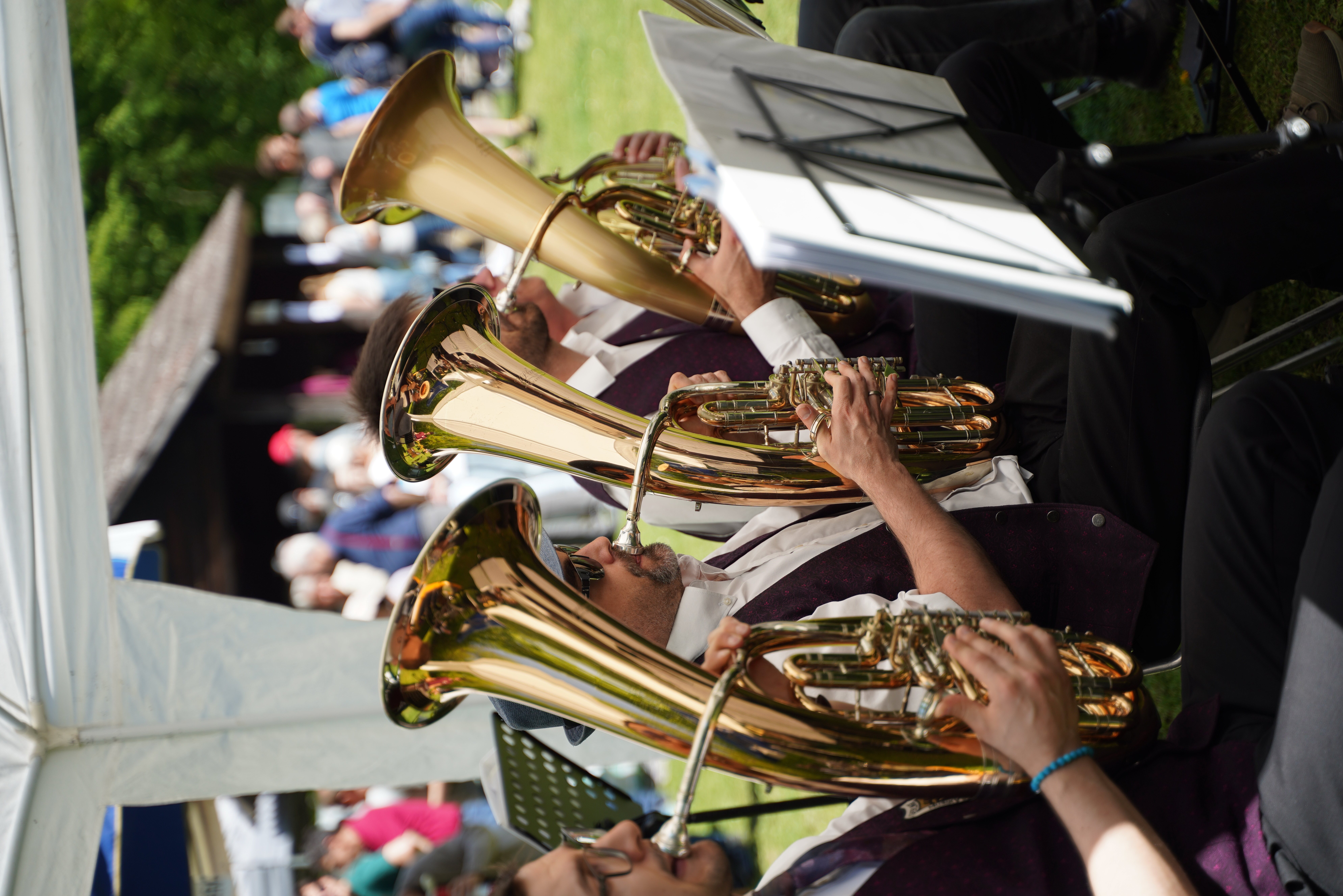 Na? Haben Sie es bemerkt? Korrekt, beide Kapellen des Musikvereins werden nun von Frauen dirigiert – so wie es der 1. Vorsitzende Matthias Widmann am diesjährigen Frühjahrskonzert angekündigt hat. Antonia Efinger hat die musikalische Eröffnung – und auch den Festausklang mit der Stadtkapelle geleitet. Unsere Jugendleiterin Leoni Hoffmann dirigiert die Jugendkapelle. Aber von vorne: Pünktlich um halb zwölf hat die Stadtkapelle den musikalischen Auftakt am Waldfest bei hochsommerlichen Randbedingungen gestartet. Passend mit dem Marsch „Die Sonne geht auf“. Im Anschluss nahm die Jugendkapelle Platz und führte die Unterhaltung der zahlreichen Besucher fort. Dank hervorragender Planung des Wirtschaftsteams um Miriam Storr konnten alle Besucher gestärkt die Wanderung oder die Radtour fortführen. Neben Pulled Pork wurde zu den Klassikern auch gegrillter Halloumi mit Tomate im Brötchen angeboten. Vielen Dank für alle die Mühen im Vorfeld, die für die meisten Besucher unsichtbar bleiben. Nach der Jugendkapelle hat die Stadtkapelle den musikalischen Ausklang übernommen – unter der Leitung von Antonia Efinger, der ein hervorragender Einstand gelungen ist. Herzlichen Glückwunsch.