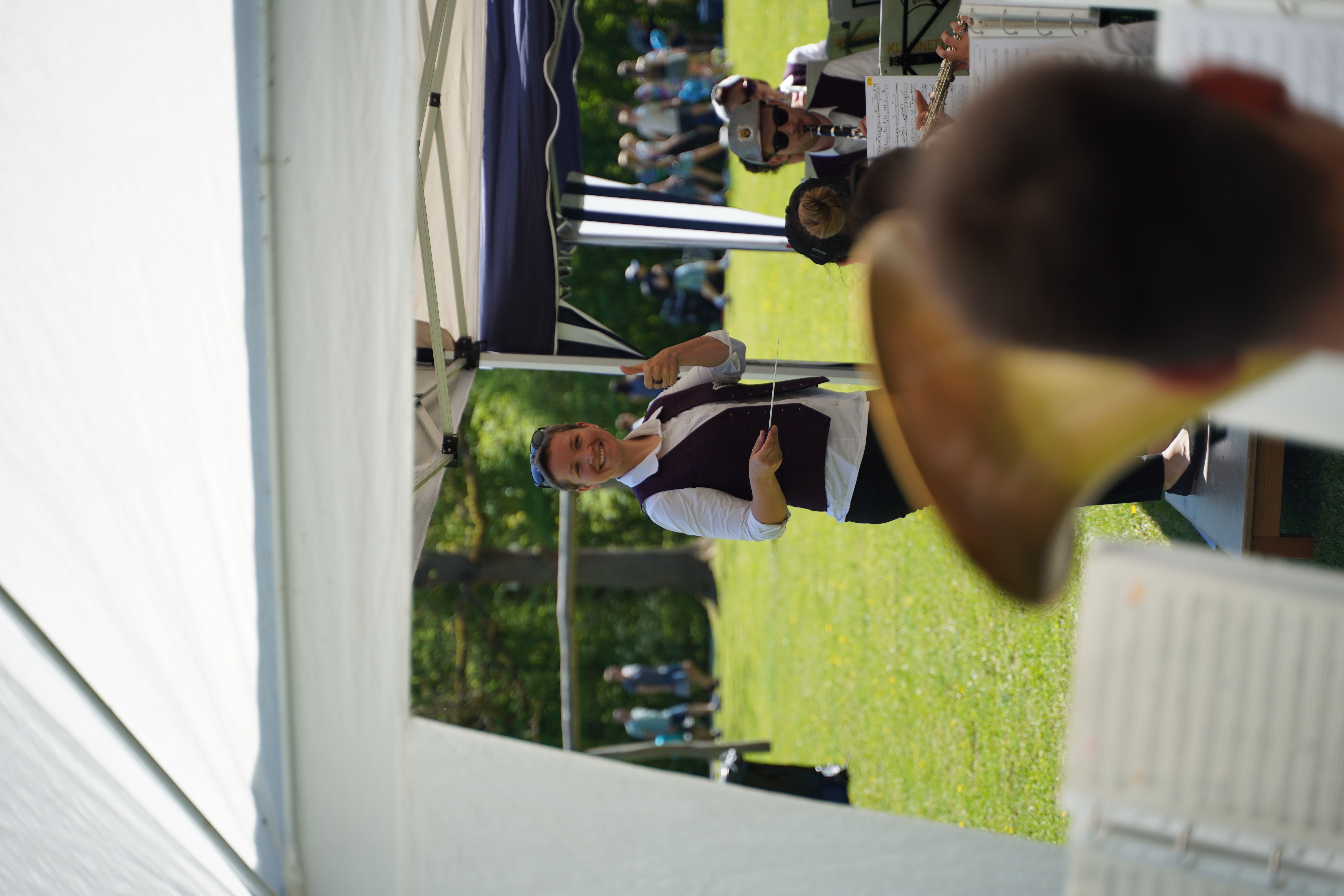 Na? Haben Sie es bemerkt? Korrekt, beide Kapellen des Musikvereins werden nun von Frauen dirigiert – so wie es der 1. Vorsitzende Matthias Widmann am diesjährigen Frühjahrskonzert angekündigt hat. Antonia Efinger hat die musikalische Eröffnung – und auch den Festausklang mit der Stadtkapelle geleitet. Unsere Jugendleiterin Leoni Hoffmann dirigiert die Jugendkapelle. Aber von vorne: Pünktlich um halb zwölf hat die Stadtkapelle den musikalischen Auftakt am Waldfest bei hochsommerlichen Randbedingungen gestartet. Passend mit dem Marsch „Die Sonne geht auf“. Im Anschluss nahm die Jugendkapelle Platz und führte die Unterhaltung der zahlreichen Besucher fort. Dank hervorragender Planung des Wirtschaftsteams um Miriam Storr konnten alle Besucher gestärkt die Wanderung oder die Radtour fortführen. Neben Pulled Pork wurde zu den Klassikern auch gegrillter Halloumi mit Tomate im Brötchen angeboten. Vielen Dank für alle die Mühen im Vorfeld, die für die meisten Besucher unsichtbar bleiben. Nach der Jugendkapelle hat die Stadtkapelle den musikalischen Ausklang übernommen – unter der Leitung von Antonia Efinger, der ein hervorragender Einstand gelungen ist. Herzlichen Glückwunsch.