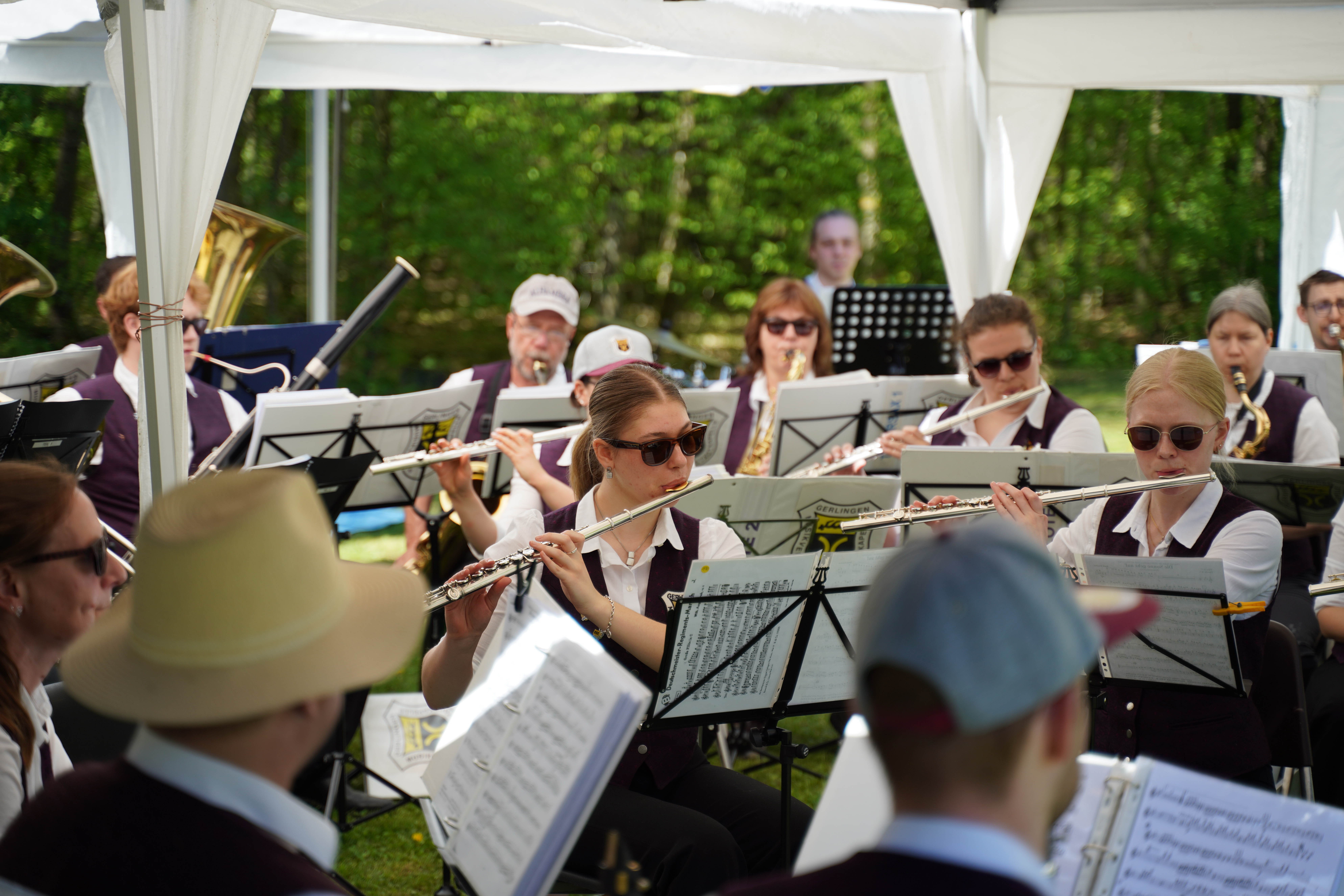 Na? Haben Sie es bemerkt? Korrekt, beide Kapellen des Musikvereins werden nun von Frauen dirigiert – so wie es der 1. Vorsitzende Matthias Widmann am diesjährigen Frühjahrskonzert angekündigt hat. Antonia Efinger hat die musikalische Eröffnung – und auch den Festausklang mit der Stadtkapelle geleitet. Unsere Jugendleiterin Leoni Hoffmann dirigiert die Jugendkapelle. Aber von vorne: Pünktlich um halb zwölf hat die Stadtkapelle den musikalischen Auftakt am Waldfest bei hochsommerlichen Randbedingungen gestartet. Passend mit dem Marsch „Die Sonne geht auf“. Im Anschluss nahm die Jugendkapelle Platz und führte die Unterhaltung der zahlreichen Besucher fort. Dank hervorragender Planung des Wirtschaftsteams um Miriam Storr konnten alle Besucher gestärkt die Wanderung oder die Radtour fortführen. Neben Pulled Pork wurde zu den Klassikern auch gegrillter Halloumi mit Tomate im Brötchen angeboten. Vielen Dank für alle die Mühen im Vorfeld, die für die meisten Besucher unsichtbar bleiben. Nach der Jugendkapelle hat die Stadtkapelle den musikalischen Ausklang übernommen – unter der Leitung von Antonia Efinger, der ein hervorragender Einstand gelungen ist. Herzlichen Glückwunsch.