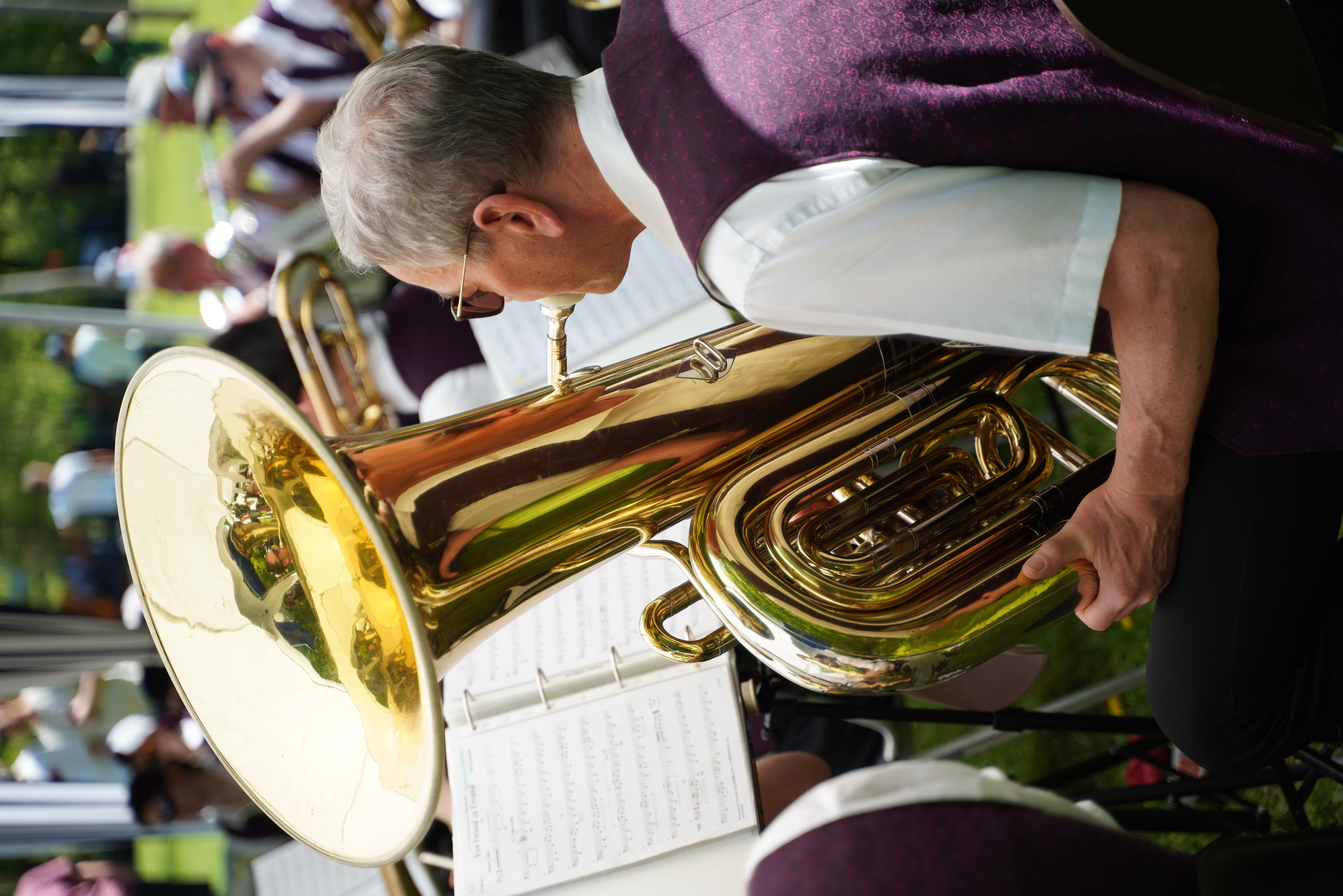 Na? Haben Sie es bemerkt? Korrekt, beide Kapellen des Musikvereins werden nun von Frauen dirigiert – so wie es der 1. Vorsitzende Matthias Widmann am diesjährigen Frühjahrskonzert angekündigt hat. Antonia Efinger hat die musikalische Eröffnung – und auch den Festausklang mit der Stadtkapelle geleitet. Unsere Jugendleiterin Leoni Hoffmann dirigiert die Jugendkapelle. Aber von vorne: Pünktlich um halb zwölf hat die Stadtkapelle den musikalischen Auftakt am Waldfest bei hochsommerlichen Randbedingungen gestartet. Passend mit dem Marsch „Die Sonne geht auf“. Im Anschluss nahm die Jugendkapelle Platz und führte die Unterhaltung der zahlreichen Besucher fort. Dank hervorragender Planung des Wirtschaftsteams um Miriam Storr konnten alle Besucher gestärkt die Wanderung oder die Radtour fortführen. Neben Pulled Pork wurde zu den Klassikern auch gegrillter Halloumi mit Tomate im Brötchen angeboten. Vielen Dank für alle die Mühen im Vorfeld, die für die meisten Besucher unsichtbar bleiben. Nach der Jugendkapelle hat die Stadtkapelle den musikalischen Ausklang übernommen – unter der Leitung von Antonia Efinger, der ein hervorragender Einstand gelungen ist. Herzlichen Glückwunsch.