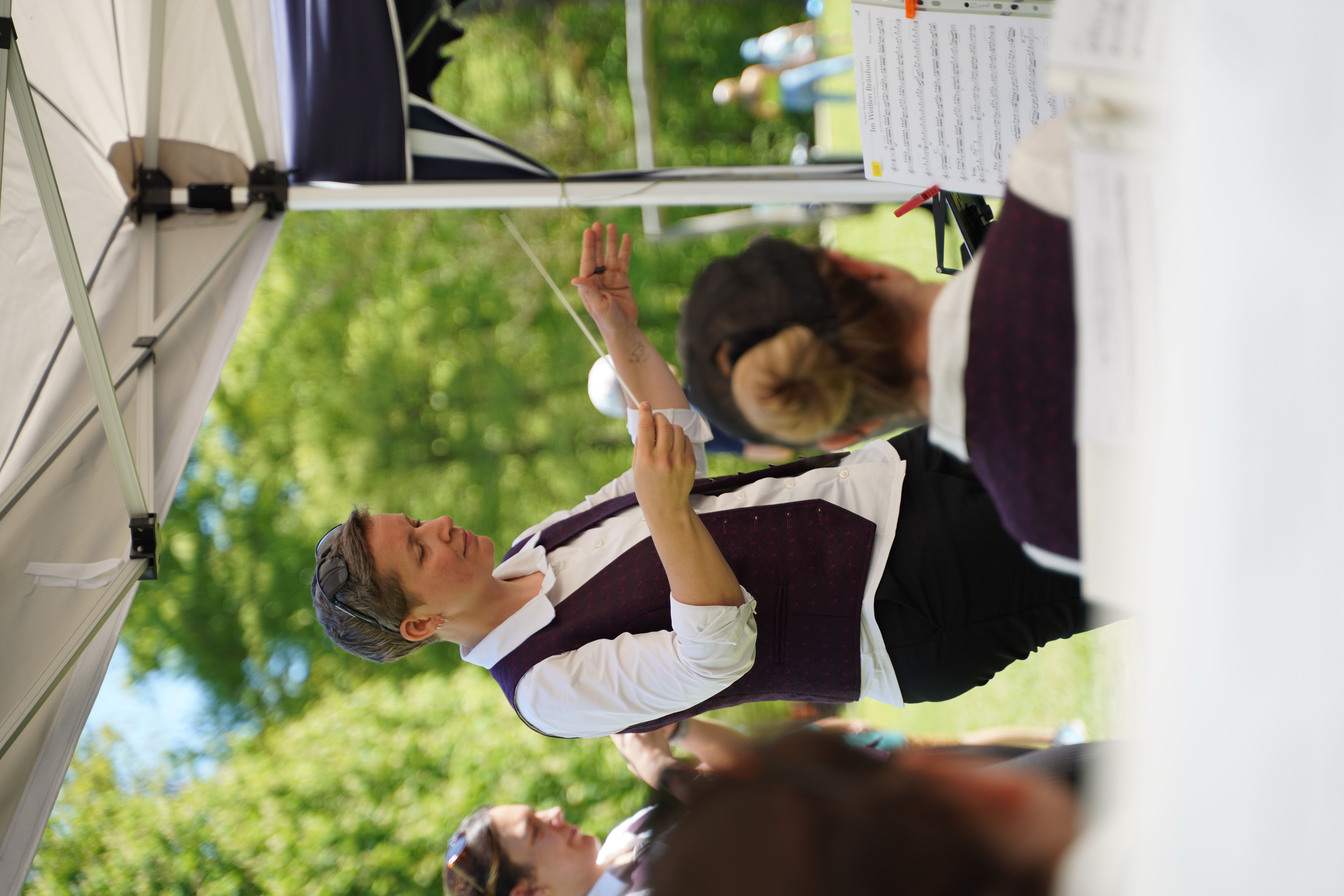 Na? Haben Sie es bemerkt? Korrekt, beide Kapellen des Musikvereins werden nun von Frauen dirigiert – so wie es der 1. Vorsitzende Matthias Widmann am diesjährigen Frühjahrskonzert angekündigt hat. Antonia Efinger hat die musikalische Eröffnung – und auch den Festausklang mit der Stadtkapelle geleitet. Unsere Jugendleiterin Leoni Hoffmann dirigiert die Jugendkapelle. Aber von vorne: Pünktlich um halb zwölf hat die Stadtkapelle den musikalischen Auftakt am Waldfest bei hochsommerlichen Randbedingungen gestartet. Passend mit dem Marsch „Die Sonne geht auf“. Im Anschluss nahm die Jugendkapelle Platz und führte die Unterhaltung der zahlreichen Besucher fort. Dank hervorragender Planung des Wirtschaftsteams um Miriam Storr konnten alle Besucher gestärkt die Wanderung oder die Radtour fortführen. Neben Pulled Pork wurde zu den Klassikern auch gegrillter Halloumi mit Tomate im Brötchen angeboten. Vielen Dank für alle die Mühen im Vorfeld, die für die meisten Besucher unsichtbar bleiben. Nach der Jugendkapelle hat die Stadtkapelle den musikalischen Ausklang übernommen – unter der Leitung von Antonia Efinger, der ein hervorragender Einstand gelungen ist. Herzlichen Glückwunsch.