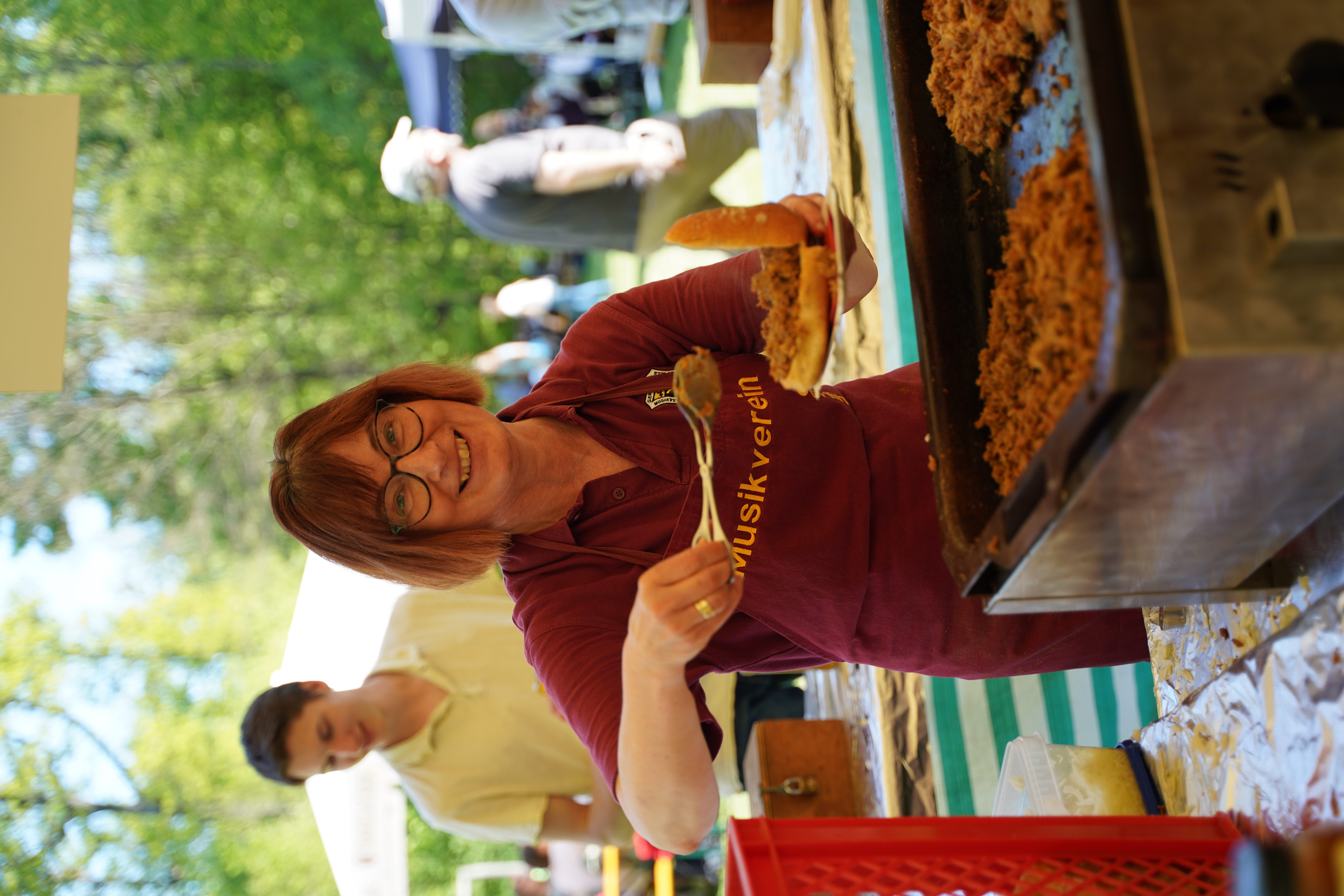 Na? Haben Sie es bemerkt? Korrekt, beide Kapellen des Musikvereins werden nun von Frauen dirigiert – so wie es der 1. Vorsitzende Matthias Widmann am diesjährigen Frühjahrskonzert angekündigt hat. Antonia Efinger hat die musikalische Eröffnung – und auch den Festausklang mit der Stadtkapelle geleitet. Unsere Jugendleiterin Leoni Hoffmann dirigiert die Jugendkapelle. Aber von vorne: Pünktlich um halb zwölf hat die Stadtkapelle den musikalischen Auftakt am Waldfest bei hochsommerlichen Randbedingungen gestartet. Passend mit dem Marsch „Die Sonne geht auf“. Im Anschluss nahm die Jugendkapelle Platz und führte die Unterhaltung der zahlreichen Besucher fort. Dank hervorragender Planung des Wirtschaftsteams um Miriam Storr konnten alle Besucher gestärkt die Wanderung oder die Radtour fortführen. Neben Pulled Pork wurde zu den Klassikern auch gegrillter Halloumi mit Tomate im Brötchen angeboten. Vielen Dank für alle die Mühen im Vorfeld, die für die meisten Besucher unsichtbar bleiben. Nach der Jugendkapelle hat die Stadtkapelle den musikalischen Ausklang übernommen – unter der Leitung von Antonia Efinger, der ein hervorragender Einstand gelungen ist. Herzlichen Glückwunsch.