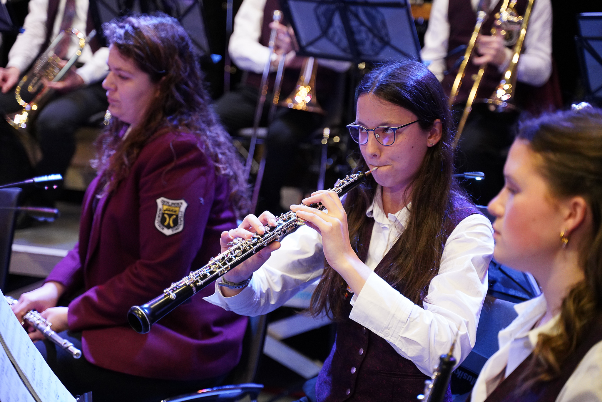Der folgende Titel „As the Moon Whispers“ ist von der ruhigeren Sorte und erzählt die Geschichte von einem kleinen Kind, das friedlich unter einem Fenster schläft. Es lauscht dem Flüstern des Mondes und lässt sich von der Nacht verzaubern. Mit dem Titel „Phil Collins Live“ folgt das erste Hit-Medley der Stadtkapelle an diesem Abend. Natürlich darf auch ein typischer Konzertmarsch im Programm nicht fehlen. Gesagt, getan: „Mit Vollen Segeln“ von Klaus Strobl wurde gekonnt vorgetragen. Die Segel sind voll im Wind und das Schiff nimmt richtig Fahrt auf: „We Will Entertain You“ – das Abschlussstück der Stadtkapelle steht als nächster Titel auf dem Programm. Ein Hit-Medley der 90er Jahre. Patrick Egge bringt mit seinem Arrangement das Gefühl der 90er auf die Bühne. Er ist als Kind der 90er selbst mit den Backstreet Boys, Spice Girls, Aqua und natürlich Robbie Williams groß geworden. Am Ende ist der Wunsch des Publikums nach einer Zugabe nicht zu überhören. Mit „Antonin’s New World“ wird dem Wunsch entsprochen und alle sind sich einig: Antonia Efinger ist eine starke Premiere mit einem abwechslungsreichen Programm gelungen. Beide Kapellen setzen das Motto des Abends „Let us entertain you“ perfekt um und bestätigen, dass gerade in der Musik Entertainment mehr bedeutet, als ein Stück gut zu spielen. Mehr, als nur Töne zu transportieren. Das ist super gelungen.