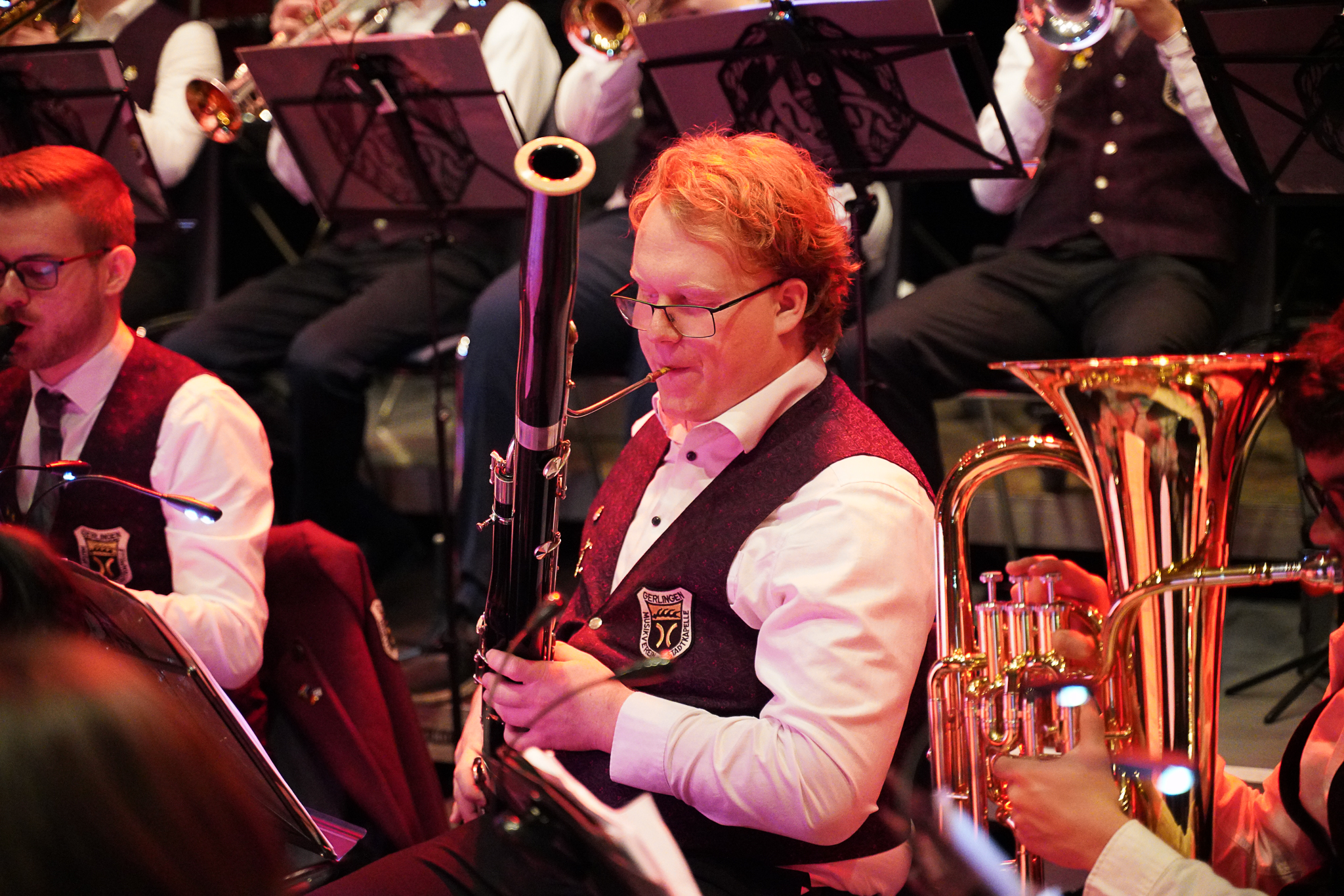 Der folgende Titel „As the Moon Whispers“ ist von der ruhigeren Sorte und erzählt die Geschichte von einem kleinen Kind, das friedlich unter einem Fenster schläft. Es lauscht dem Flüstern des Mondes und lässt sich von der Nacht verzaubern. Mit dem Titel „Phil Collins Live“ folgt das erste Hit-Medley der Stadtkapelle an diesem Abend. Natürlich darf auch ein typischer Konzertmarsch im Programm nicht fehlen. Gesagt, getan: „Mit Vollen Segeln“ von Klaus Strobl wurde gekonnt vorgetragen. Die Segel sind voll im Wind und das Schiff nimmt richtig Fahrt auf: „We Will Entertain You“ – das Abschlussstück der Stadtkapelle steht als nächster Titel auf dem Programm. Ein Hit-Medley der 90er Jahre. Patrick Egge bringt mit seinem Arrangement das Gefühl der 90er auf die Bühne. Er ist als Kind der 90er selbst mit den Backstreet Boys, Spice Girls, Aqua und natürlich Robbie Williams groß geworden. Am Ende ist der Wunsch des Publikums nach einer Zugabe nicht zu überhören. Mit „Antonin’s New World“ wird dem Wunsch entsprochen und alle sind sich einig: Antonia Efinger ist eine starke Premiere mit einem abwechslungsreichen Programm gelungen. Beide Kapellen setzen das Motto des Abends „Let us entertain you“ perfekt um und bestätigen, dass gerade in der Musik Entertainment mehr bedeutet, als ein Stück gut zu spielen. Mehr, als nur Töne zu transportieren. Das ist super gelungen.