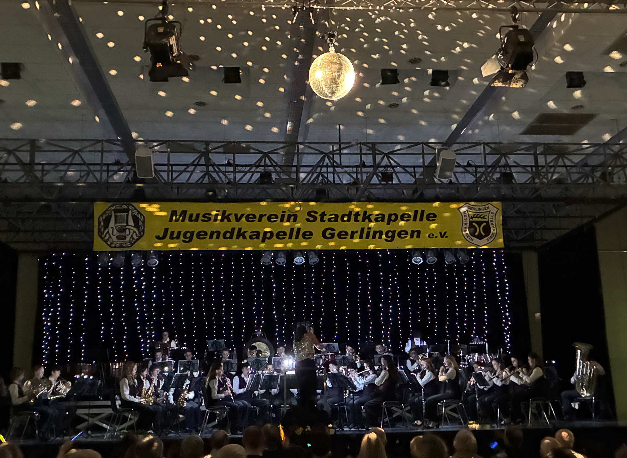 Der offiziell letzte Titel der JuKa unter der Leitung von Leoni Hoffmann ist im wahrsten Sinne des Wortes „Programm: „Let Me Entertain You“ – ein Medley von Robbie Williams’ größten Hits. Dass die Jugendkapelle auch Entertainment versteht beweist Erik Laicher, der im Vorfeld in typischer Showmaster-Manier die Menge in der Stadthalle richtig in Stimmung bringt. Hunderte Leuchtstäbe in den Händen der Besucher und Lichteffekte einer riesigen Discokugel an Wänden und Decke der Halle sorgen bei dem Titel „Angels“ für Gänsehaut und echtes Konzertfeeling.