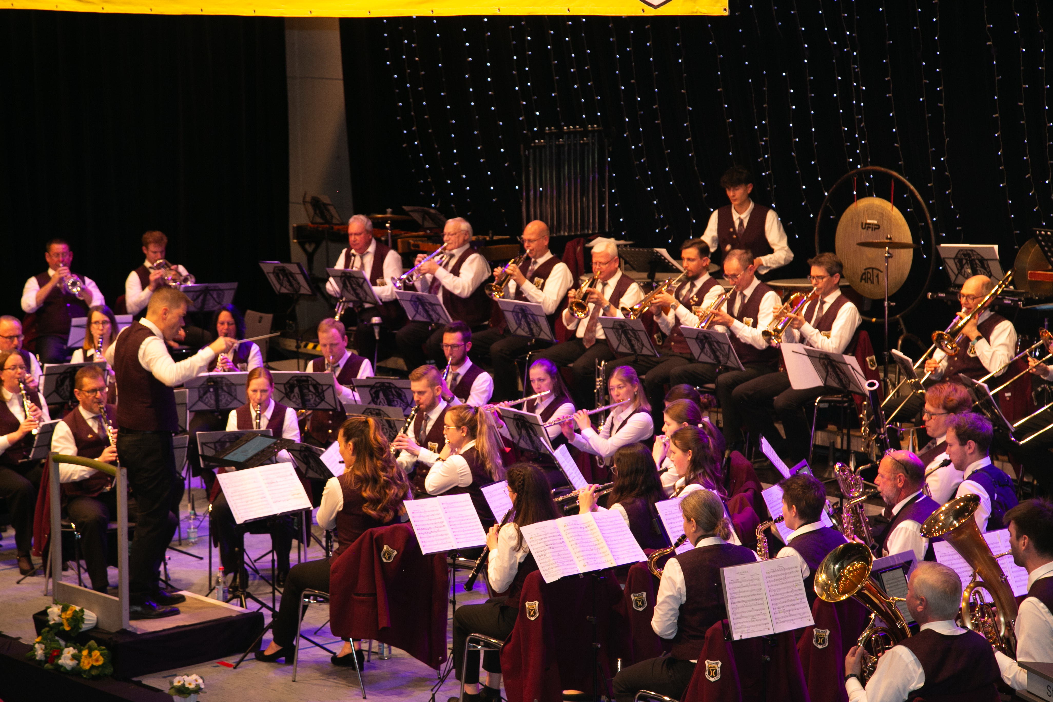 Mit Leoni Hoffmann konnte der 1. Vorsitzende Matthias Widmann in seiner Eröffnungsrede unsere neue Dirigentin der Jugendkapelle vorstellen. Sie ist seit langer Zeit Jugendleiterin und hat nun auch die musikalischen Aufgaben der Jugendkapelle übernommen. Passend zum Konzertmotto „Zwischen Himmel und Erde“ eröffnete die JuKa auch gleich mit John Williams‘ „Out of this World“ den musikalischen Abend in einer sehr gut gefüllten Stadthalle. Doch das tatsächliche Highlight wurde mit dem Stück „Trombone Concertino“ gesetzt – hier hat Clemens Merkle mit seinem auswendig gespielten (!) Posaunensolo eine echte Marke gesetzt. Respekt. Mit weiteren Titeln wie „Dakota“ und „Heroes of the Marvel Universe“ bestätigte die Juka ihr Können. Mit der Zugabe „99 Luftballons“ endete der erste Teil des Frühjahrskonzerts und die Jugendkapelle ließ tatsächlich zum Abschluss noch Luftballons steigen.