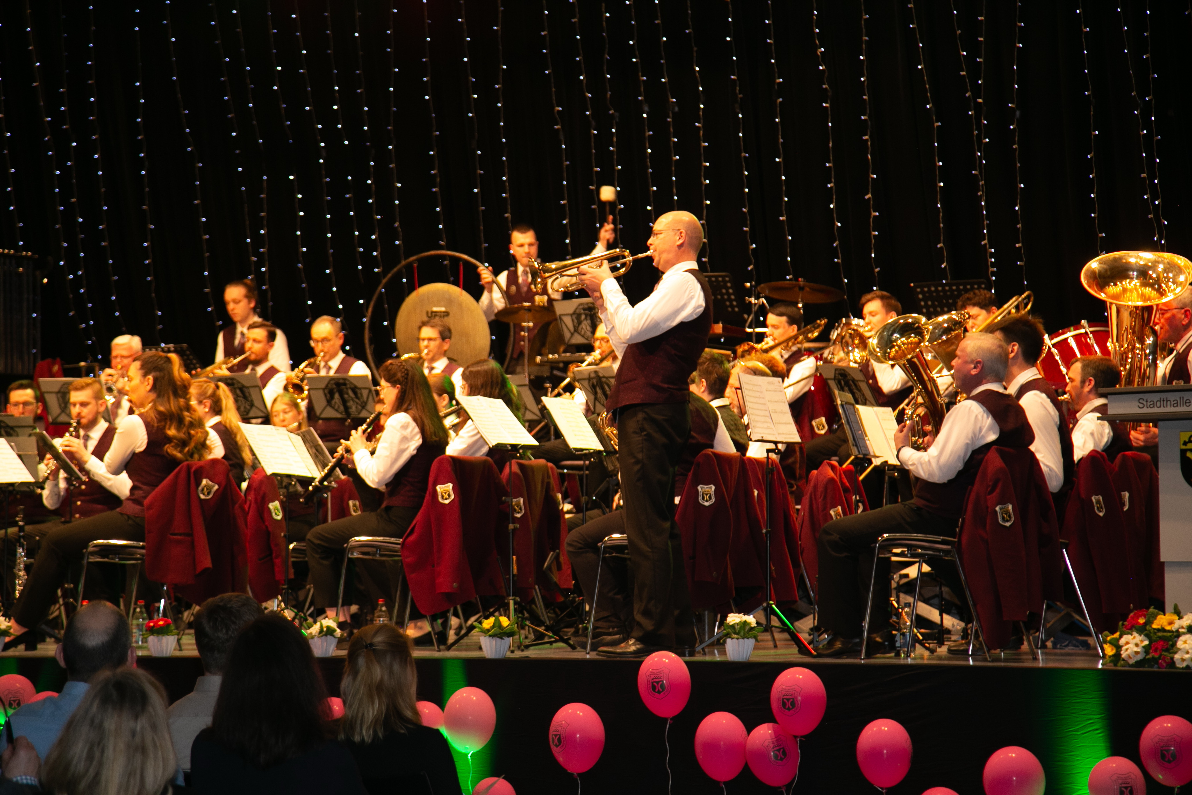 Mit Leoni Hoffmann konnte der 1. Vorsitzende Matthias Widmann in seiner Eröffnungsrede unsere neue Dirigentin der Jugendkapelle vorstellen. Sie ist seit langer Zeit Jugendleiterin und hat nun auch die musikalischen Aufgaben der Jugendkapelle übernommen. Passend zum Konzertmotto „Zwischen Himmel und Erde“ eröffnete die JuKa auch gleich mit John Williams‘ „Out of this World“ den musikalischen Abend in einer sehr gut gefüllten Stadthalle. Doch das tatsächliche Highlight wurde mit dem Stück „Trombone Concertino“ gesetzt – hier hat Clemens Merkle mit seinem auswendig gespielten (!) Posaunensolo eine echte Marke gesetzt. Respekt. Mit weiteren Titeln wie „Dakota“ und „Heroes of the Marvel Universe“ bestätigte die Juka ihr Können. Mit der Zugabe „99 Luftballons“ endete der erste Teil des Frühjahrskonzerts und die Jugendkapelle ließ tatsächlich zum Abschluss noch Luftballons steigen.