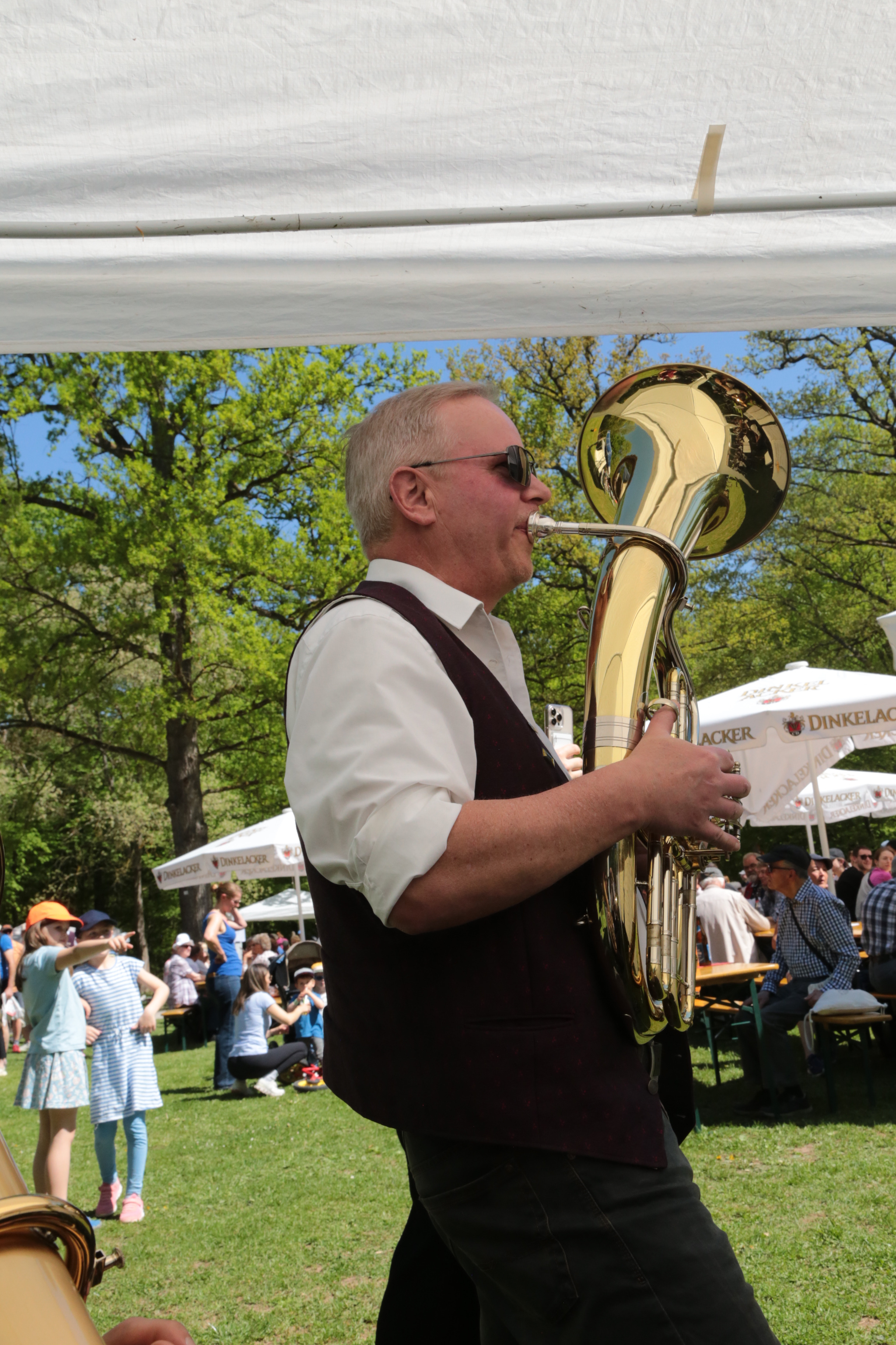 Na? Haben Sie es bemerkt? Korrekt, beide Kapellen des Musikvereins werden nun von Frauen dirigiert – so wie es der 1. Vorsitzende Matthias Widmann am diesjährigen Frühjahrskonzert angekündigt hat. Antonia Efinger hat die musikalische Eröffnung – und auch den Festausklang mit der Stadtkapelle geleitet. Unsere Jugendleiterin Leoni Hoffmann dirigiert die Jugendkapelle. Aber von vorne: Pünktlich um halb zwölf hat die Stadtkapelle den musikalischen Auftakt am Waldfest bei hochsommerlichen Randbedingungen gestartet. Passend mit dem Marsch „Die Sonne geht auf“. Im Anschluss nahm die Jugendkapelle Platz und führte die Unterhaltung der zahlreichen Besucher fort. Dank hervorragender Planung des Wirtschaftsteams um Miriam Storr konnten alle Besucher gestärkt die Wanderung oder die Radtour fortführen. Neben Pulled Pork wurde zu den Klassikern auch gegrillter Halloumi mit Tomate im Brötchen angeboten. Vielen Dank für alle die Mühen im Vorfeld, die für die meisten Besucher unsichtbar bleiben. Nach der Jugendkapelle hat die Stadtkapelle den musikalischen Ausklang übernommen – unter der Leitung von Antonia Efinger, der ein hervorragender Einstand gelungen ist. Herzlichen Glückwunsch.