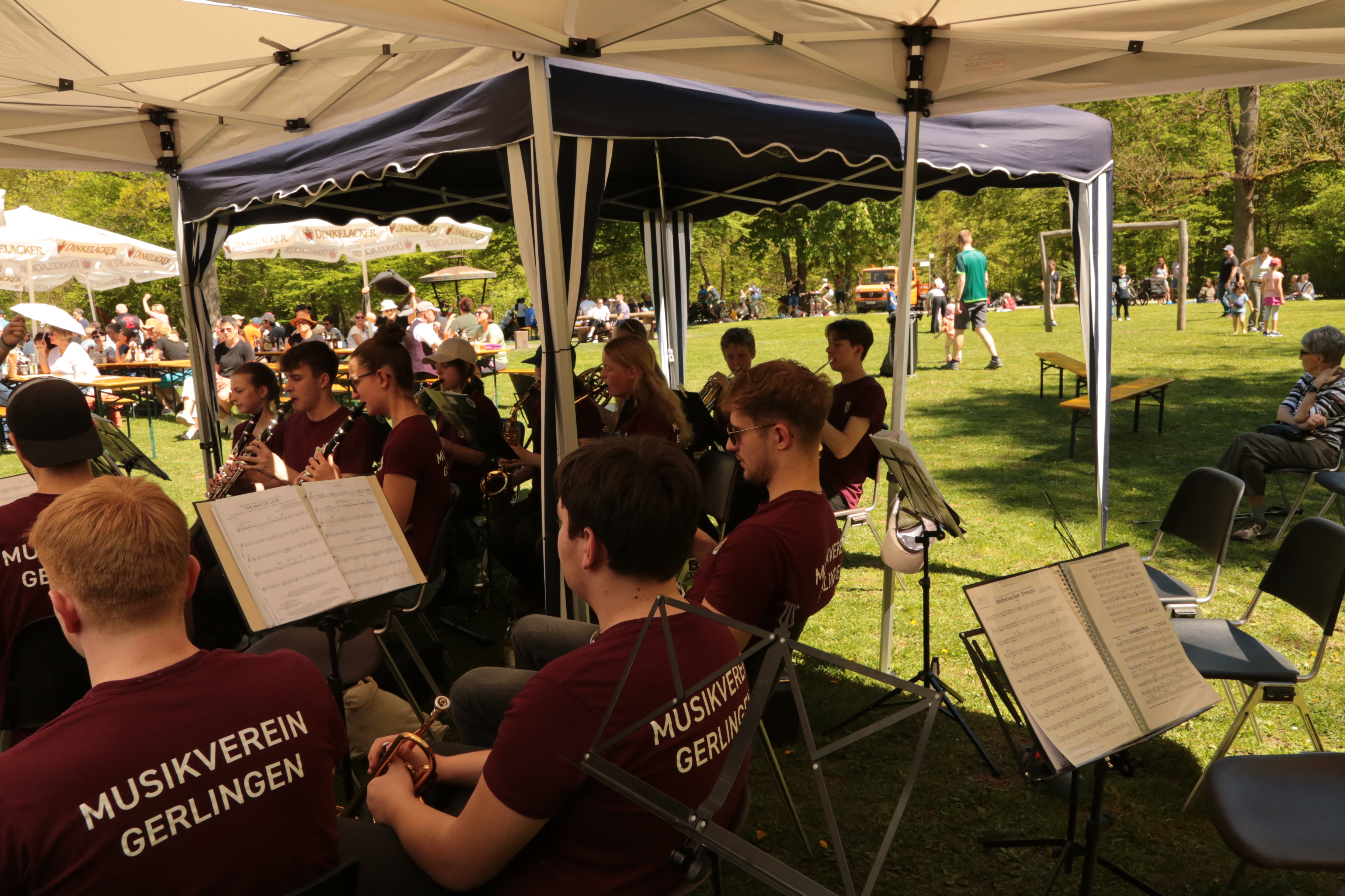 Na? Haben Sie es bemerkt? Korrekt, beide Kapellen des Musikvereins werden nun von Frauen dirigiert – so wie es der 1. Vorsitzende Matthias Widmann am diesjährigen Frühjahrskonzert angekündigt hat. Antonia Efinger hat die musikalische Eröffnung – und auch den Festausklang mit der Stadtkapelle geleitet. Unsere Jugendleiterin Leoni Hoffmann dirigiert die Jugendkapelle. Aber von vorne: Pünktlich um halb zwölf hat die Stadtkapelle den musikalischen Auftakt am Waldfest bei hochsommerlichen Randbedingungen gestartet. Passend mit dem Marsch „Die Sonne geht auf“. Im Anschluss nahm die Jugendkapelle Platz und führte die Unterhaltung der zahlreichen Besucher fort. Dank hervorragender Planung des Wirtschaftsteams um Miriam Storr konnten alle Besucher gestärkt die Wanderung oder die Radtour fortführen. Neben Pulled Pork wurde zu den Klassikern auch gegrillter Halloumi mit Tomate im Brötchen angeboten. Vielen Dank für alle die Mühen im Vorfeld, die für die meisten Besucher unsichtbar bleiben. Nach der Jugendkapelle hat die Stadtkapelle den musikalischen Ausklang übernommen – unter der Leitung von Antonia Efinger, der ein hervorragender Einstand gelungen ist. Herzlichen Glückwunsch.