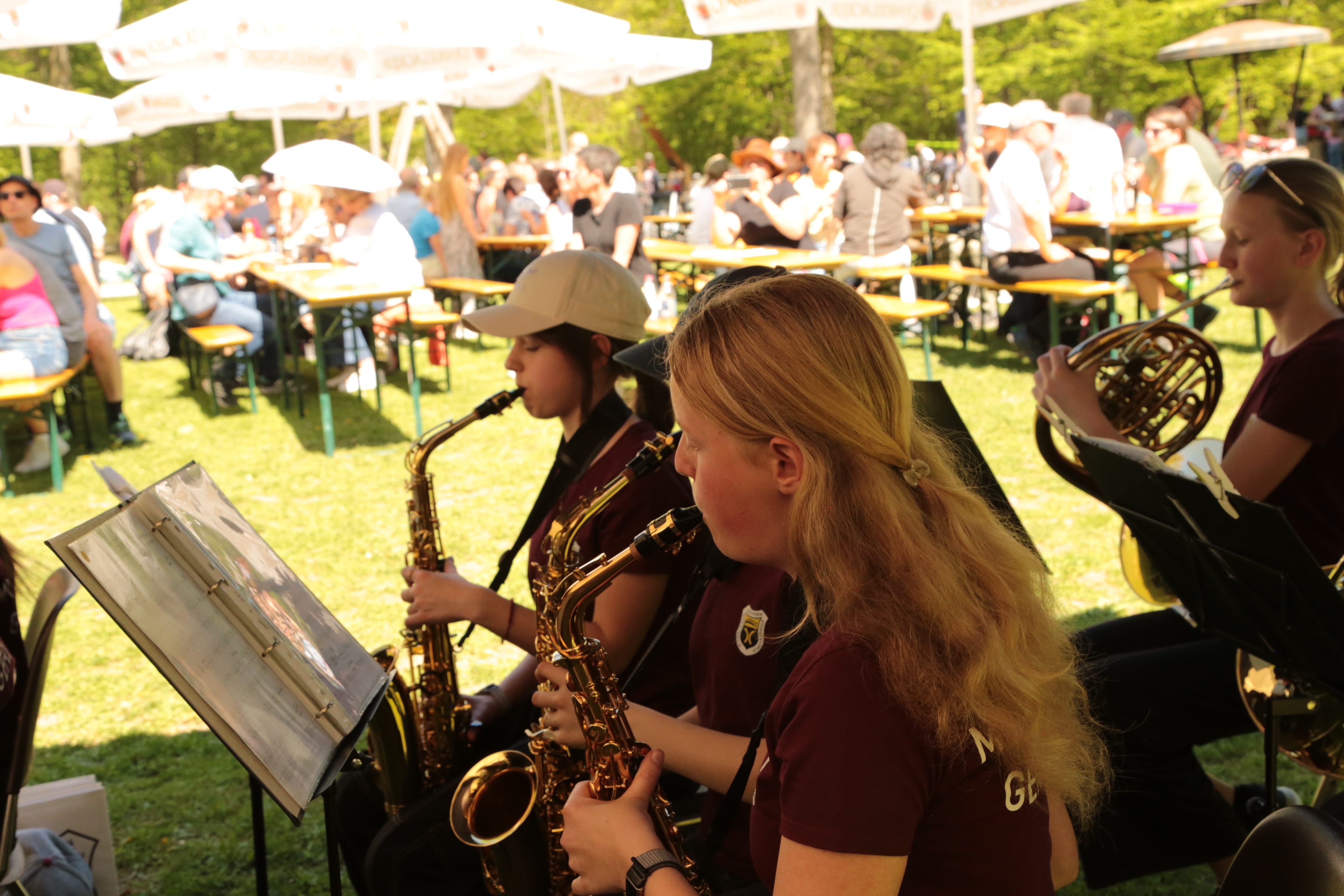 Na? Haben Sie es bemerkt? Korrekt, beide Kapellen des Musikvereins werden nun von Frauen dirigiert – so wie es der 1. Vorsitzende Matthias Widmann am diesjährigen Frühjahrskonzert angekündigt hat. Antonia Efinger hat die musikalische Eröffnung – und auch den Festausklang mit der Stadtkapelle geleitet. Unsere Jugendleiterin Leoni Hoffmann dirigiert die Jugendkapelle. Aber von vorne: Pünktlich um halb zwölf hat die Stadtkapelle den musikalischen Auftakt am Waldfest bei hochsommerlichen Randbedingungen gestartet. Passend mit dem Marsch „Die Sonne geht auf“. Im Anschluss nahm die Jugendkapelle Platz und führte die Unterhaltung der zahlreichen Besucher fort. Dank hervorragender Planung des Wirtschaftsteams um Miriam Storr konnten alle Besucher gestärkt die Wanderung oder die Radtour fortführen. Neben Pulled Pork wurde zu den Klassikern auch gegrillter Halloumi mit Tomate im Brötchen angeboten. Vielen Dank für alle die Mühen im Vorfeld, die für die meisten Besucher unsichtbar bleiben. Nach der Jugendkapelle hat die Stadtkapelle den musikalischen Ausklang übernommen – unter der Leitung von Antonia Efinger, der ein hervorragender Einstand gelungen ist. Herzlichen Glückwunsch.