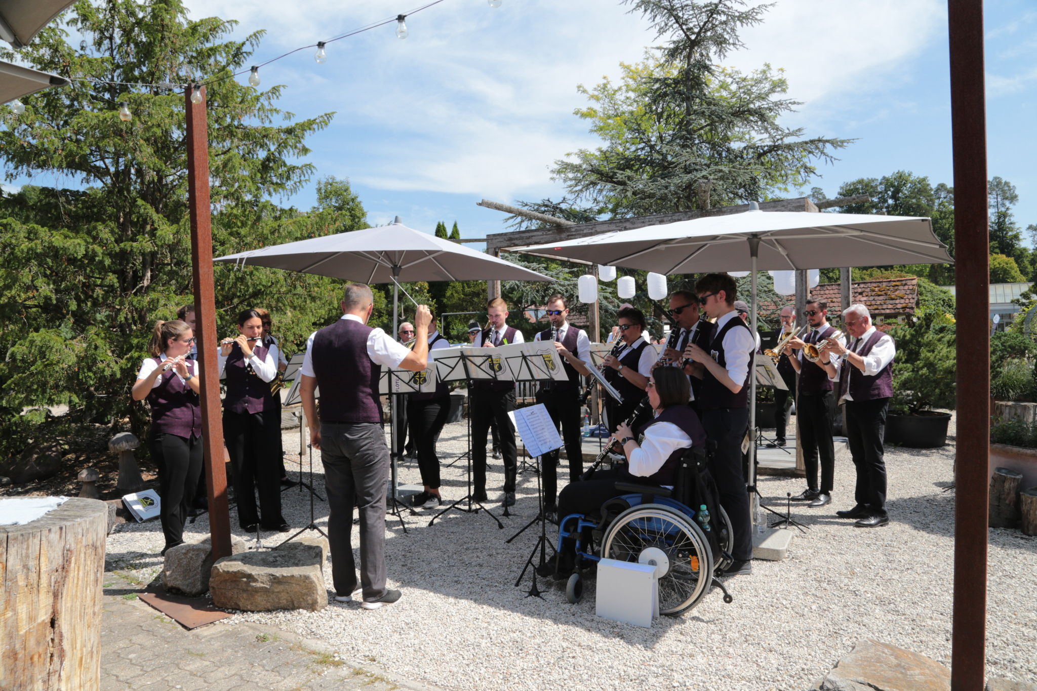 Na? Haben Sie es bemerkt? Korrekt, beide Kapellen des Musikvereins werden nun von Frauen dirigiert – so wie es der 1. Vorsitzende Matthias Widmann am diesjährigen Frühjahrskonzert angekündigt hat. Antonia Efinger hat die musikalische Eröffnung – und auch den Festausklang mit der Stadtkapelle geleitet. Unsere Jugendleiterin Leoni Hoffmann dirigiert die Jugendkapelle. Aber von vorne: Pünktlich um halb zwölf hat die Stadtkapelle den musikalischen Auftakt am Waldfest bei hochsommerlichen Randbedingungen gestartet. Passend mit dem Marsch „Die Sonne geht auf“. Im Anschluss nahm die Jugendkapelle Platz und führte die Unterhaltung der zahlreichen Besucher fort. Dank hervorragender Planung des Wirtschaftsteams um Miriam Storr konnten alle Besucher gestärkt die Wanderung oder die Radtour fortführen. Neben Pulled Pork wurde zu den Klassikern auch gegrillter Halloumi mit Tomate im Brötchen angeboten. Vielen Dank für alle die Mühen im Vorfeld, die für die meisten Besucher unsichtbar bleiben. Nach der Jugendkapelle hat die Stadtkapelle den musikalischen Ausklang übernommen – unter der Leitung von Antonia Efinger, der ein hervorragender Einstand gelungen ist. Herzlichen Glückwunsch.