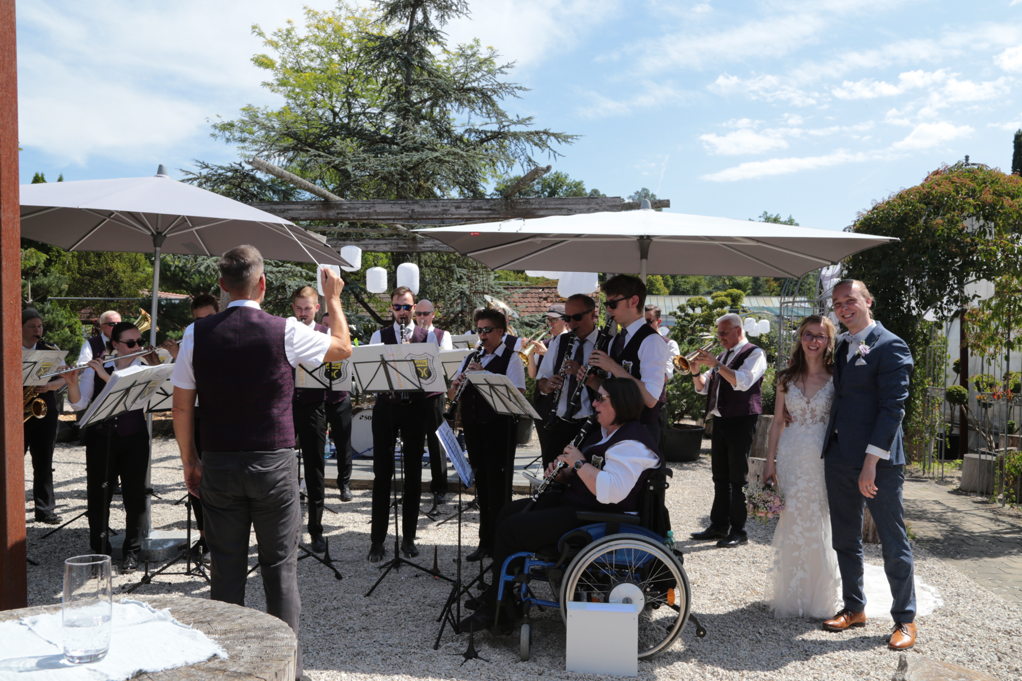 Na? Haben Sie es bemerkt? Korrekt, beide Kapellen des Musikvereins werden nun von Frauen dirigiert – so wie es der 1. Vorsitzende Matthias Widmann am diesjährigen Frühjahrskonzert angekündigt hat. Antonia Efinger hat die musikalische Eröffnung – und auch den Festausklang mit der Stadtkapelle geleitet. Unsere Jugendleiterin Leoni Hoffmann dirigiert die Jugendkapelle. Aber von vorne: Pünktlich um halb zwölf hat die Stadtkapelle den musikalischen Auftakt am Waldfest bei hochsommerlichen Randbedingungen gestartet. Passend mit dem Marsch „Die Sonne geht auf“. Im Anschluss nahm die Jugendkapelle Platz und führte die Unterhaltung der zahlreichen Besucher fort. Dank hervorragender Planung des Wirtschaftsteams um Miriam Storr konnten alle Besucher gestärkt die Wanderung oder die Radtour fortführen. Neben Pulled Pork wurde zu den Klassikern auch gegrillter Halloumi mit Tomate im Brötchen angeboten. Vielen Dank für alle die Mühen im Vorfeld, die für die meisten Besucher unsichtbar bleiben. Nach der Jugendkapelle hat die Stadtkapelle den musikalischen Ausklang übernommen – unter der Leitung von Antonia Efinger, der ein hervorragender Einstand gelungen ist. Herzlichen Glückwunsch.