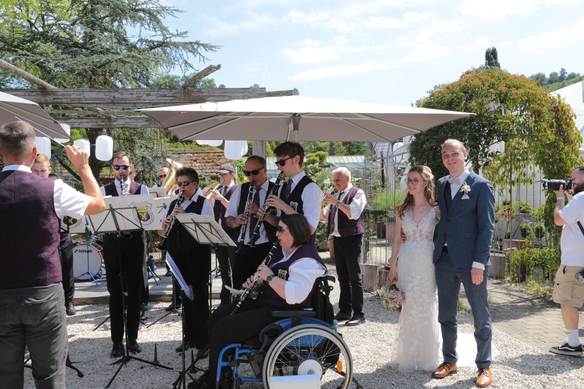 Na? Haben Sie es bemerkt? Korrekt, beide Kapellen des Musikvereins werden nun von Frauen dirigiert – so wie es der 1. Vorsitzende Matthias Widmann am diesjährigen Frühjahrskonzert angekündigt hat. Antonia Efinger hat die musikalische Eröffnung – und auch den Festausklang mit der Stadtkapelle geleitet. Unsere Jugendleiterin Leoni Hoffmann dirigiert die Jugendkapelle. Aber von vorne: Pünktlich um halb zwölf hat die Stadtkapelle den musikalischen Auftakt am Waldfest bei hochsommerlichen Randbedingungen gestartet. Passend mit dem Marsch „Die Sonne geht auf“. Im Anschluss nahm die Jugendkapelle Platz und führte die Unterhaltung der zahlreichen Besucher fort. Dank hervorragender Planung des Wirtschaftsteams um Miriam Storr konnten alle Besucher gestärkt die Wanderung oder die Radtour fortführen. Neben Pulled Pork wurde zu den Klassikern auch gegrillter Halloumi mit Tomate im Brötchen angeboten. Vielen Dank für alle die Mühen im Vorfeld, die für die meisten Besucher unsichtbar bleiben. Nach der Jugendkapelle hat die Stadtkapelle den musikalischen Ausklang übernommen – unter der Leitung von Antonia Efinger, der ein hervorragender Einstand gelungen ist. Herzlichen Glückwunsch.