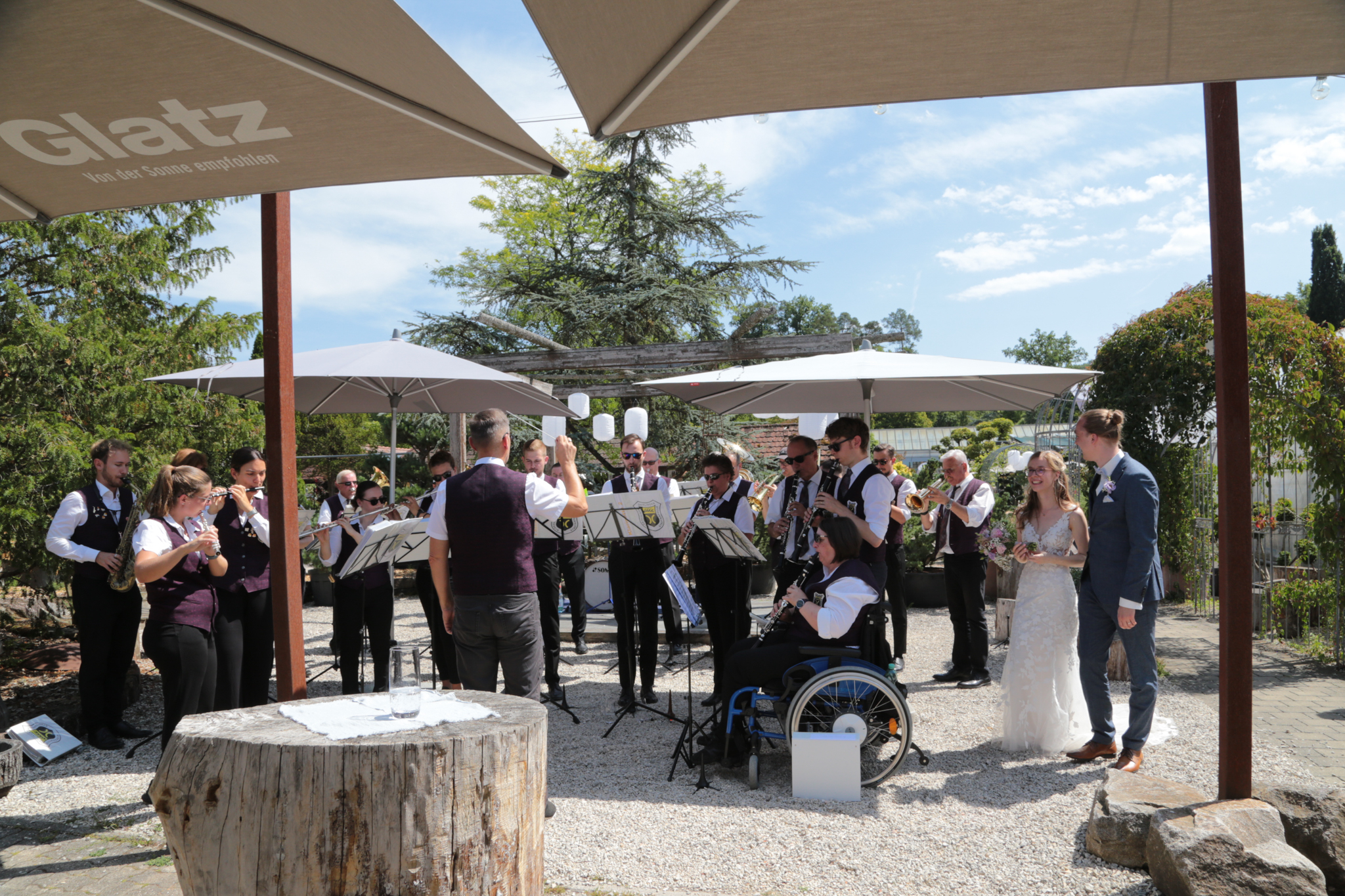 Na? Haben Sie es bemerkt? Korrekt, beide Kapellen des Musikvereins werden nun von Frauen dirigiert – so wie es der 1. Vorsitzende Matthias Widmann am diesjährigen Frühjahrskonzert angekündigt hat. Antonia Efinger hat die musikalische Eröffnung – und auch den Festausklang mit der Stadtkapelle geleitet. Unsere Jugendleiterin Leoni Hoffmann dirigiert die Jugendkapelle. Aber von vorne: Pünktlich um halb zwölf hat die Stadtkapelle den musikalischen Auftakt am Waldfest bei hochsommerlichen Randbedingungen gestartet. Passend mit dem Marsch „Die Sonne geht auf“. Im Anschluss nahm die Jugendkapelle Platz und führte die Unterhaltung der zahlreichen Besucher fort. Dank hervorragender Planung des Wirtschaftsteams um Miriam Storr konnten alle Besucher gestärkt die Wanderung oder die Radtour fortführen. Neben Pulled Pork wurde zu den Klassikern auch gegrillter Halloumi mit Tomate im Brötchen angeboten. Vielen Dank für alle die Mühen im Vorfeld, die für die meisten Besucher unsichtbar bleiben. Nach der Jugendkapelle hat die Stadtkapelle den musikalischen Ausklang übernommen – unter der Leitung von Antonia Efinger, der ein hervorragender Einstand gelungen ist. Herzlichen Glückwunsch.