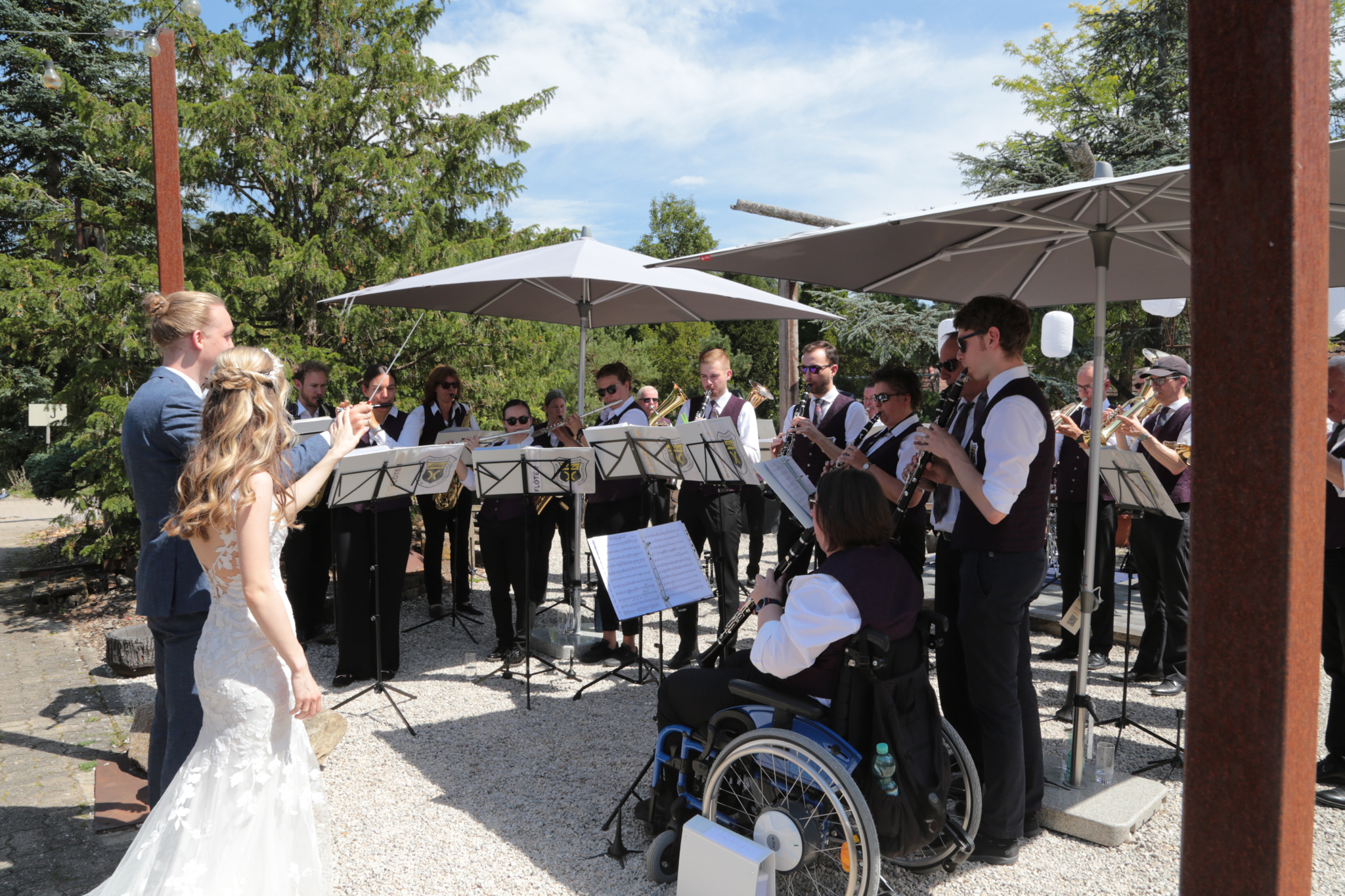 Na? Haben Sie es bemerkt? Korrekt, beide Kapellen des Musikvereins werden nun von Frauen dirigiert – so wie es der 1. Vorsitzende Matthias Widmann am diesjährigen Frühjahrskonzert angekündigt hat. Antonia Efinger hat die musikalische Eröffnung – und auch den Festausklang mit der Stadtkapelle geleitet. Unsere Jugendleiterin Leoni Hoffmann dirigiert die Jugendkapelle. Aber von vorne: Pünktlich um halb zwölf hat die Stadtkapelle den musikalischen Auftakt am Waldfest bei hochsommerlichen Randbedingungen gestartet. Passend mit dem Marsch „Die Sonne geht auf“. Im Anschluss nahm die Jugendkapelle Platz und führte die Unterhaltung der zahlreichen Besucher fort. Dank hervorragender Planung des Wirtschaftsteams um Miriam Storr konnten alle Besucher gestärkt die Wanderung oder die Radtour fortführen. Neben Pulled Pork wurde zu den Klassikern auch gegrillter Halloumi mit Tomate im Brötchen angeboten. Vielen Dank für alle die Mühen im Vorfeld, die für die meisten Besucher unsichtbar bleiben. Nach der Jugendkapelle hat die Stadtkapelle den musikalischen Ausklang übernommen – unter der Leitung von Antonia Efinger, der ein hervorragender Einstand gelungen ist. Herzlichen Glückwunsch.