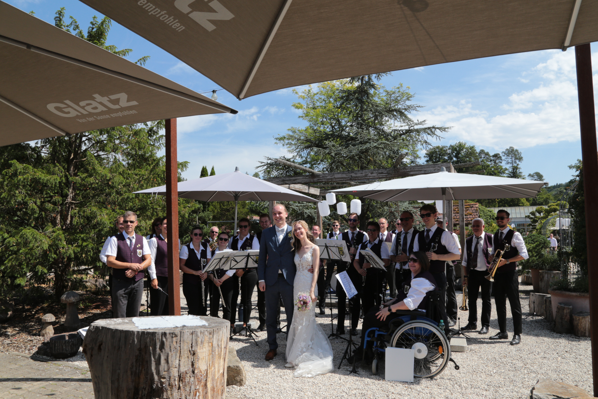 Na? Haben Sie es bemerkt? Korrekt, beide Kapellen des Musikvereins werden nun von Frauen dirigiert – so wie es der 1. Vorsitzende Matthias Widmann am diesjährigen Frühjahrskonzert angekündigt hat. Antonia Efinger hat die musikalische Eröffnung – und auch den Festausklang mit der Stadtkapelle geleitet. Unsere Jugendleiterin Leoni Hoffmann dirigiert die Jugendkapelle. Aber von vorne: Pünktlich um halb zwölf hat die Stadtkapelle den musikalischen Auftakt am Waldfest bei hochsommerlichen Randbedingungen gestartet. Passend mit dem Marsch „Die Sonne geht auf“. Im Anschluss nahm die Jugendkapelle Platz und führte die Unterhaltung der zahlreichen Besucher fort. Dank hervorragender Planung des Wirtschaftsteams um Miriam Storr konnten alle Besucher gestärkt die Wanderung oder die Radtour fortführen. Neben Pulled Pork wurde zu den Klassikern auch gegrillter Halloumi mit Tomate im Brötchen angeboten. Vielen Dank für alle die Mühen im Vorfeld, die für die meisten Besucher unsichtbar bleiben. Nach der Jugendkapelle hat die Stadtkapelle den musikalischen Ausklang übernommen – unter der Leitung von Antonia Efinger, der ein hervorragender Einstand gelungen ist. Herzlichen Glückwunsch.