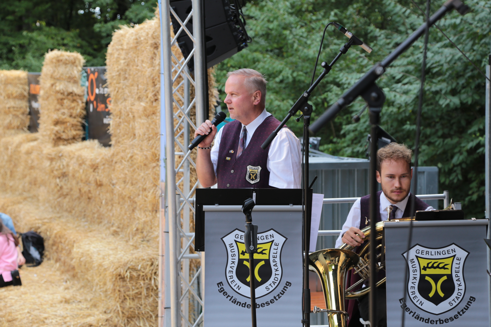 In gewohnter Tradition hat der Musikverein Gerlingen auch das 44. Straßenfest mit einem kleinen Umzug vom Café Courage entlang der Hauptstraße bis zur Festbühne vor dem Rathaus eröffnet. Nachdem Bürgermeister Dirk Oestringer mit dem Fassanstich das Straßenfest offiziell eröffnet hatte, übernahm der Musikverein das Geschehen auf der Bühne. Unsere Dirigentin Antonia Efinger hat mit einem abwechslungsreichen Programm für für die Unterhaltung der Besucher gesorgt.