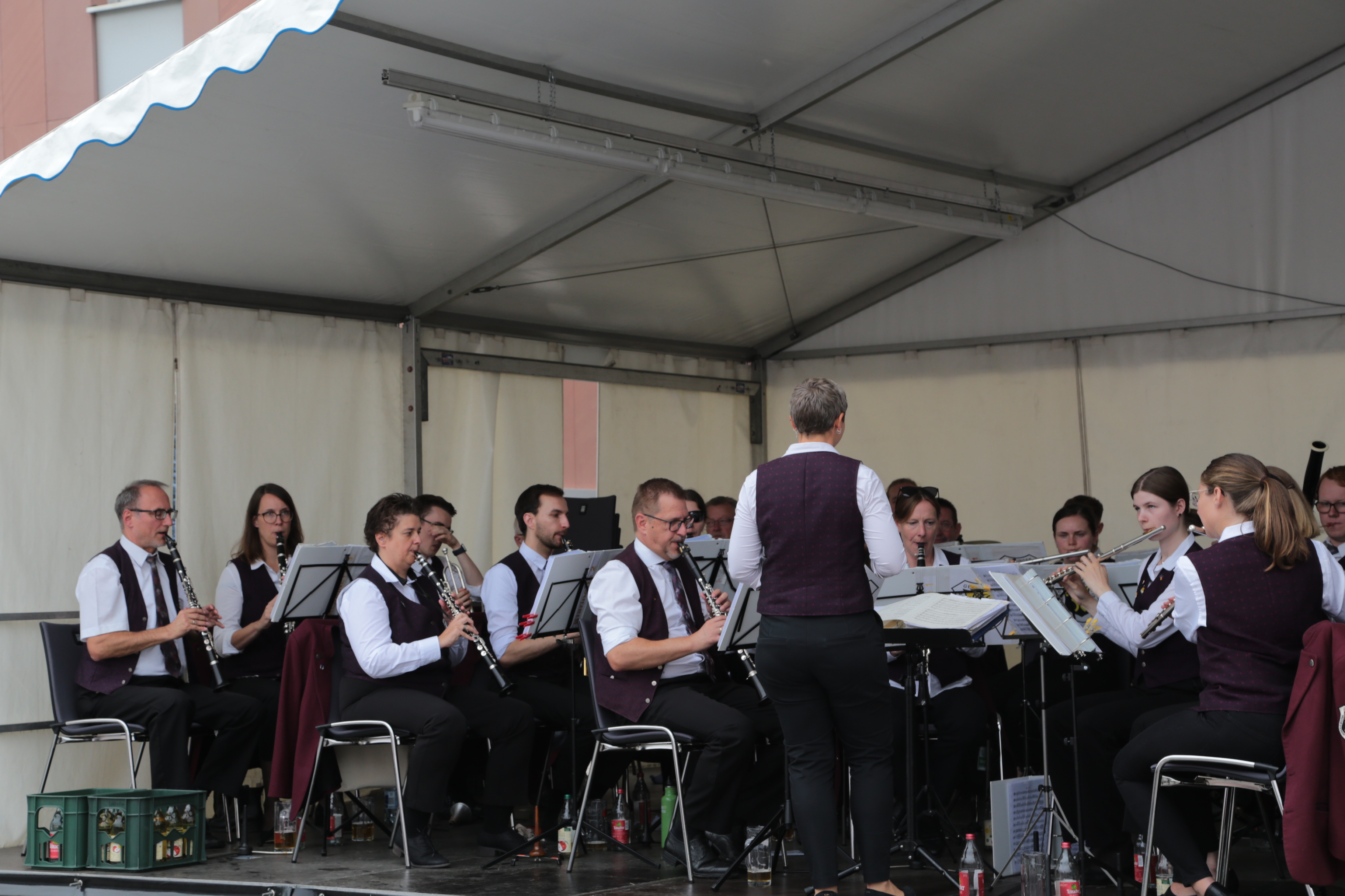 Na? Haben Sie es bemerkt? Korrekt, beide Kapellen des Musikvereins werden nun von Frauen dirigiert – so wie es der 1. Vorsitzende Matthias Widmann am diesjährigen Frühjahrskonzert angekündigt hat. Antonia Efinger hat die musikalische Eröffnung – und auch den Festausklang mit der Stadtkapelle geleitet. Unsere Jugendleiterin Leoni Hoffmann dirigiert die Jugendkapelle. Aber von vorne: Pünktlich um halb zwölf hat die Stadtkapelle den musikalischen Auftakt am Waldfest bei hochsommerlichen Randbedingungen gestartet. Passend mit dem Marsch „Die Sonne geht auf“. Im Anschluss nahm die Jugendkapelle Platz und führte die Unterhaltung der zahlreichen Besucher fort. Dank hervorragender Planung des Wirtschaftsteams um Miriam Storr konnten alle Besucher gestärkt die Wanderung oder die Radtour fortführen. Neben Pulled Pork wurde zu den Klassikern auch gegrillter Halloumi mit Tomate im Brötchen angeboten. Vielen Dank für alle die Mühen im Vorfeld, die für die meisten Besucher unsichtbar bleiben. Nach der Jugendkapelle hat die Stadtkapelle den musikalischen Ausklang übernommen – unter der Leitung von Antonia Efinger, der ein hervorragender Einstand gelungen ist. Herzlichen Glückwunsch.