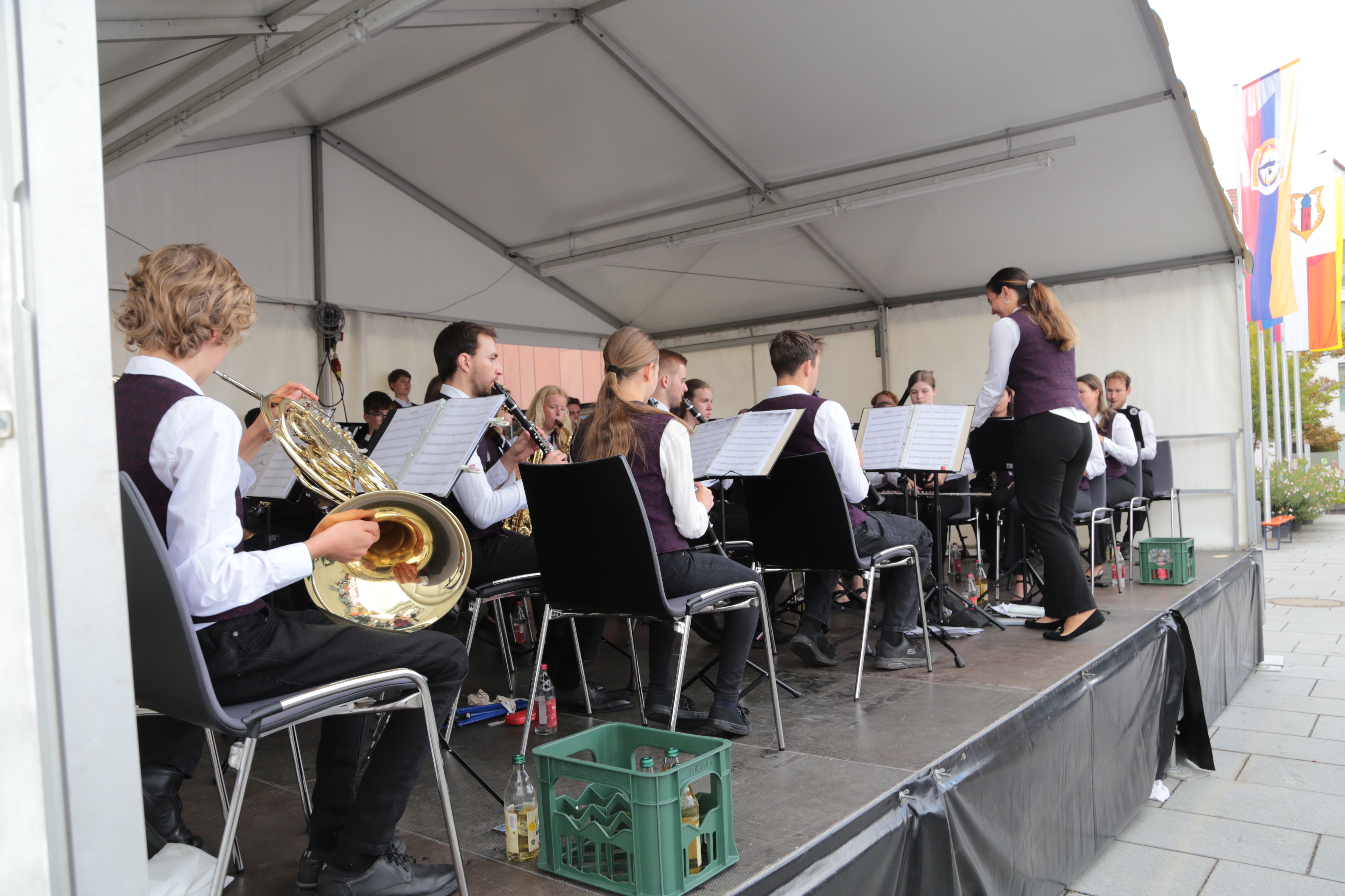 Na? Haben Sie es bemerkt? Korrekt, beide Kapellen des Musikvereins werden nun von Frauen dirigiert – so wie es der 1. Vorsitzende Matthias Widmann am diesjährigen Frühjahrskonzert angekündigt hat. Antonia Efinger hat die musikalische Eröffnung – und auch den Festausklang mit der Stadtkapelle geleitet. Unsere Jugendleiterin Leoni Hoffmann dirigiert die Jugendkapelle. Aber von vorne: Pünktlich um halb zwölf hat die Stadtkapelle den musikalischen Auftakt am Waldfest bei hochsommerlichen Randbedingungen gestartet. Passend mit dem Marsch „Die Sonne geht auf“. Im Anschluss nahm die Jugendkapelle Platz und führte die Unterhaltung der zahlreichen Besucher fort. Dank hervorragender Planung des Wirtschaftsteams um Miriam Storr konnten alle Besucher gestärkt die Wanderung oder die Radtour fortführen. Neben Pulled Pork wurde zu den Klassikern auch gegrillter Halloumi mit Tomate im Brötchen angeboten. Vielen Dank für alle die Mühen im Vorfeld, die für die meisten Besucher unsichtbar bleiben. Nach der Jugendkapelle hat die Stadtkapelle den musikalischen Ausklang übernommen – unter der Leitung von Antonia Efinger, der ein hervorragender Einstand gelungen ist. Herzlichen Glückwunsch.