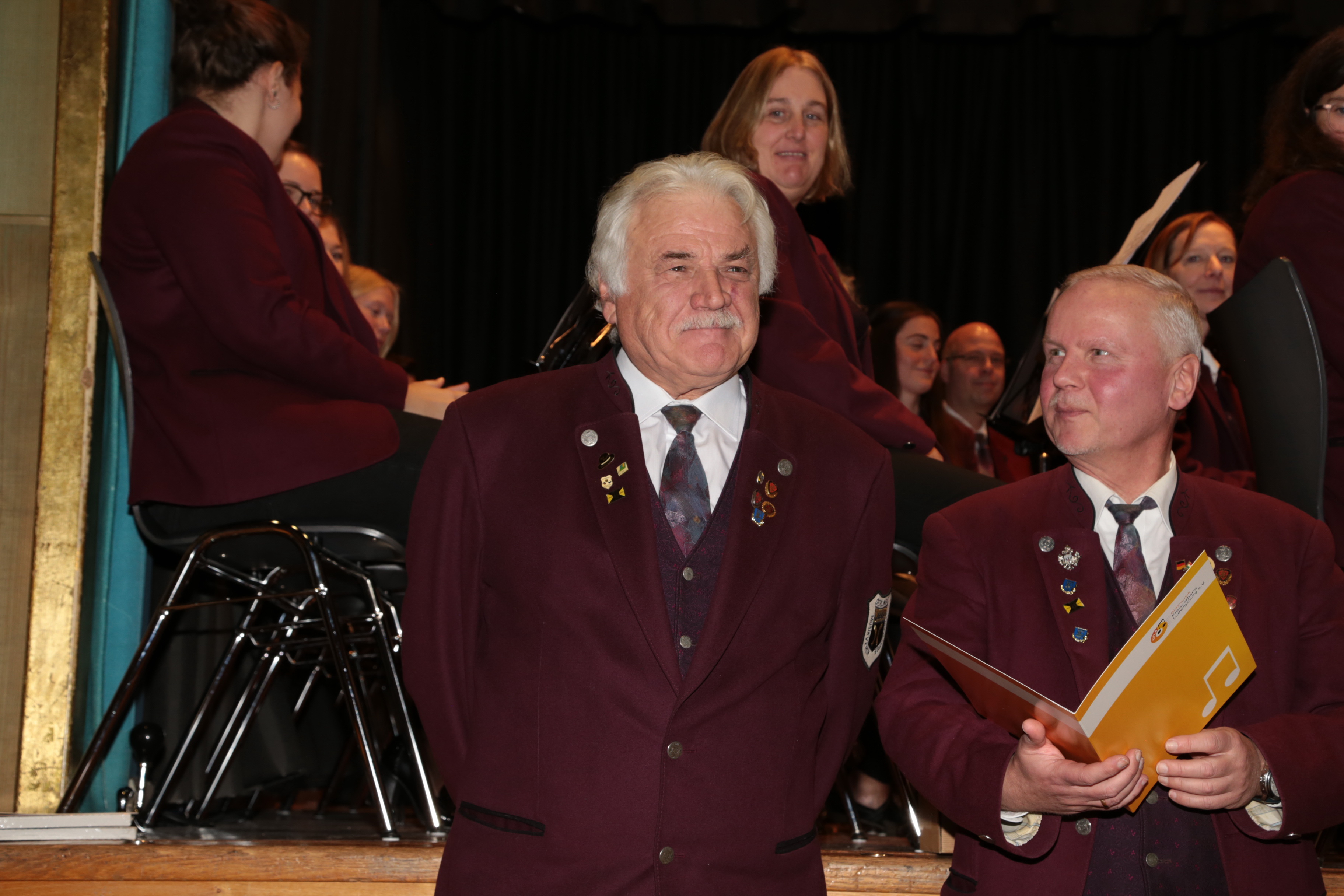 Unsere Musikkameraden Werner Fischer (Schlagzeug) und Harald Höschele (Trompete) wurden für 60 Jahre aktive Tätigkeit mit der Ehrennadel in „Gold mit Diamant“ geehrt. Harald hat die „Egerländer Besetzung“ gegründet und über 20 Jahre erfolgreich musikalisch geleitet. Viele Jahre war er auch aktiv im Ausschuss des Vereins und als Pressewart tätig, so dass Harald zusätzlich die Ehrenmitgliedschaft durch die Vorstandschaft verliehen wurde. Für 50 Jahre aktive Tätigkeit wurden Martin Ruppert (Tenorhorn) und Andreas Kaußen (Trompete) geehrt. Rainer Wagner (Trompete) wurde für 40 Jahre aktive Tätigkeit ausgezeichnet. Ihr 10-jähriges Jubiläum können Marie Bonaventura, Julian Krauß, Simon Thier und Jens-Martin Widmann feiern. Vielen Dank auch an unsere fördernden Mitglieder Alfred Smiskol und August Zimmermann (beide jeweils 20 Jahre), Wolfgang Andreas und Roland Maier (jeweils 40 Jahre) sowie Hermann Wagner für 60 Jahre fördernde Mitgliedschaft.