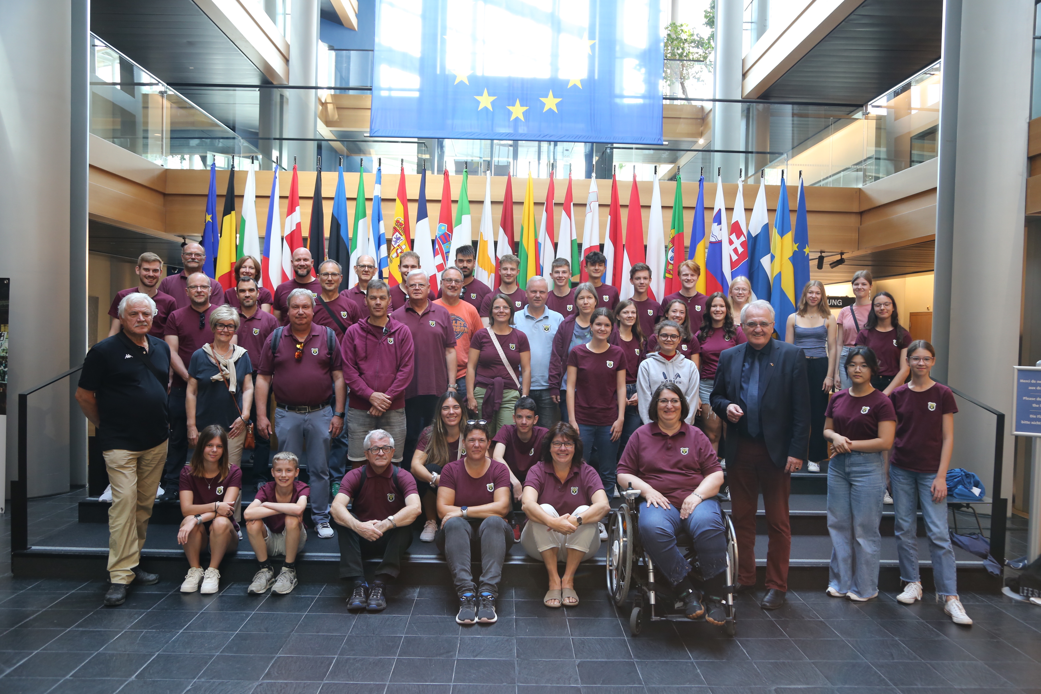 Richtig Großes hatten wir am 22. Juli vor. Wurden wir doch tatsächlich vom Vizepräsidenten des Europäischen Parlaments, Rainer Wieland, nach Straßburg zu einer privaten Führung durch das Parlament eingeladen. Los ging es hierzu schon um 06:30 Uhr in Gerlingen mit einem Reisebus. Knapp 50 Mitglieder des Vereins sind der Einladung ins benachbarte Elsass gefolgt. Nach einer persönlichen Begrüßung durch Hr. Wieland ging es nach der Sicherheitskontrolle direkt mit der Führung los. Über verschiedene Treppenhäuser und schier endlose Flure ging es in verschiedene Sitzungsräume, an unzähligen Büros vorbei bis zum großen Highlight des Vormittags: Ein Besuch mitten im Plenarsaal, der eigentlich für Besucher nicht zugänglich ist. Aber wenn Gerlinger unter sich sind, ist einiges möglich. Geduldig und überhaupt nicht abgehoben  – sondern voll auf Augenhöhe – hat Hr. Wieland sämtliche Fragen mit Ruhe und Gelassenheit beantwortet. Natürlich durfte auch ein Besuch auf der Dachterrasse nicht fehlen, der einen herrlichen Ausblick über die geschichtsträchtige Stadt liefert. Gegen Mittag war die Führung beendet und Hr. Wieland ließ es sich nicht nehmen, jeden seiner Gäste persönlich zu verabschieden.