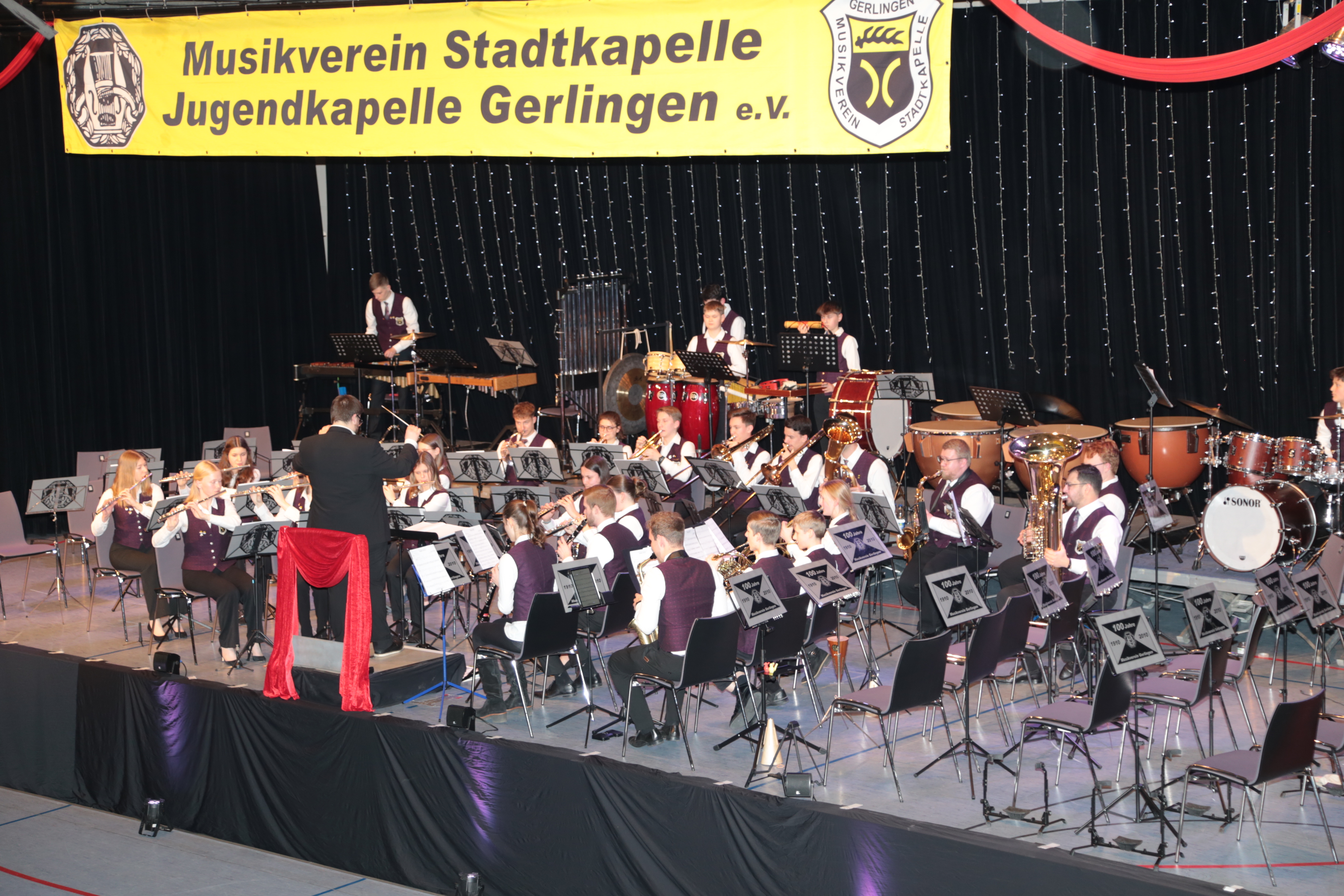 Gewohnt souverän startete die ca. 30-köpfige Jugendkapelle den musikalischen Abend mit „Panta Rhei“, was übersetzt so viel wie „Alles fließt“ bedeutet. Im Anschluss wurde dem Publikum die Filmmusik aus „Drachenzähmen leicht gemacht“ unter dem Titel „How to train your Dragon“ präsentiert. Mit dem folgenden Titel „Baba Yetu“ kündigte Sonja Laicher den offiziell letzten Titel der Juka an. An dieser Stelle „herzlichen Dank“ an Sonja, die die Moderation von Matthias Widmann übernommen hat. Nach der anschließenden Zugabe nahm die Stadtkapelle mit knapp 60 Musiker auf der Bühne Platz. Dank einer sehr guten Zusammenarbeit mit der Jugendmusikschule ist es dem Musikverein möglich, eine vergleichsweise große Stadtkapelle zu präsentieren, die regelmäßig mit Jugendlichen aus der Juka verstärkt wird. „Darauf bin ich wirklich stolz“, so Matthias Widmann in seiner Ansprache. Im Anschluss an die ersten Titel „Schwabenland“ und „Königsmarsch“ ging es in eine kleine Pause, die für Erfrischungen und kleine Gespräche genutzt wurde. Mit „Arsenal“ und „Mont Blanc“ ging es nach der Pause fulminant weiter. Fulminant deshalb, da bei „Mont Blanc“ neben Vogelgezwitscher auch Lawinenabgänge musikalisch umgesetzt wurden. Ruhiger ging es in den nachfolgenden Stücken „Adele 21“ und „Out of Africa“ zur Sache. Mit „Oregon“ endete das erste Frühjahrskonzert unter der musikalischen Leitung von Maximilian Broichhaus. Dem Wunsch des Publikums nach einer Zugabe sind wir gerne gefolgt und beendeten das Konzert mit der Polka „Böhmisch klingt’s am Schönsten“. Unser Wirtschaftsteam um Miriam Storr haben mal wieder frisch zubereitete Köstlichkeiten vorbereitet, was vom zahlreichen Publikum sehr gut angenommen wurde.