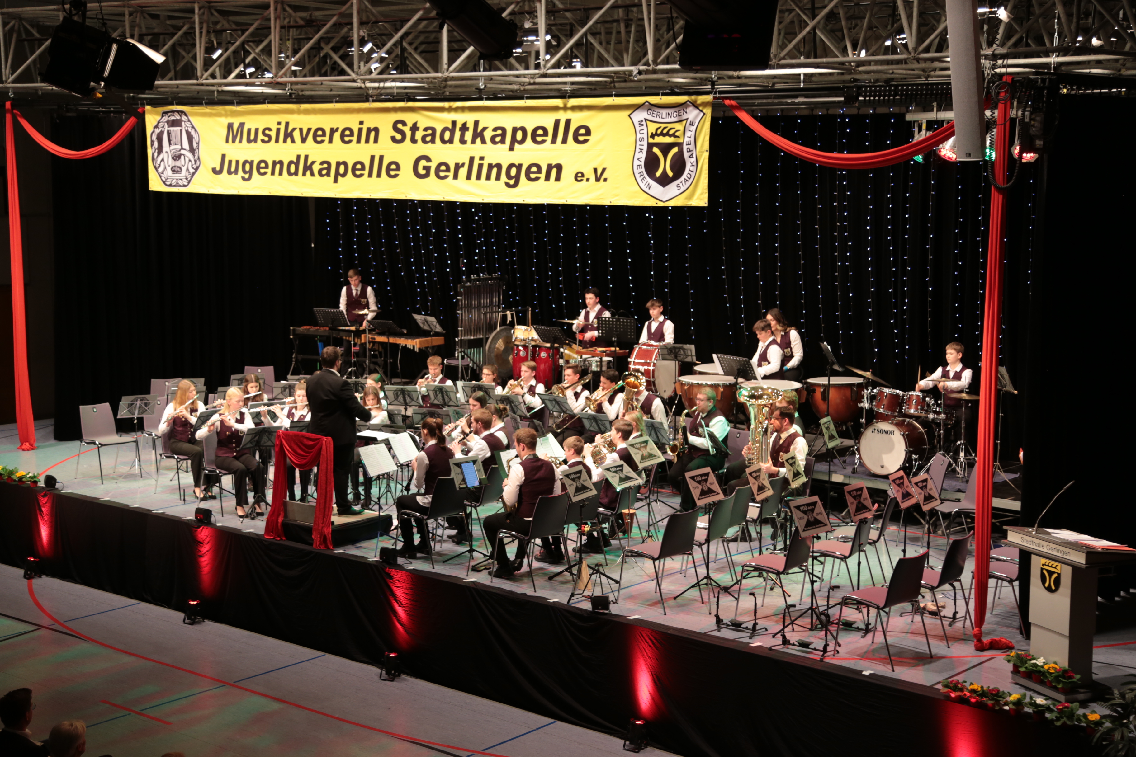 Beim Frühjahrskonzert vor einem Jahr musste der 1. Vorsitzende Matthias Widmann in seiner Eröffnungsrede berichten, dass der bisherige Stadtmusikdirektor Daxi Pan mit diesem Konzert verabschiedet wird. Ein Jahr später steht mit Maximilian Broichhaus ein neuer Dirigent an der Spitze der Jugend‑und Stadtkapelle. Max ist seit September 2023 musikalischer Leiter beider Kapellen und hat die letzten Monate für eine intensive Konzertvorbereitung mit frischen Ideen genutzt.