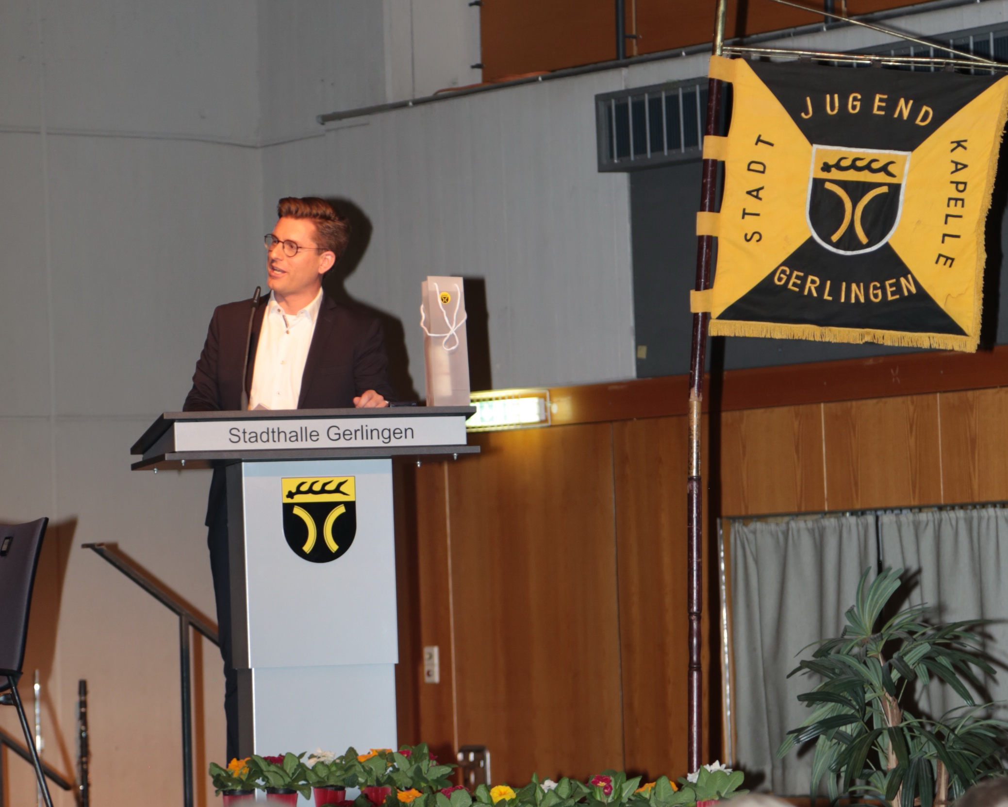 Beim Frühjahrskonzert vor einem Jahr musste der 1. Vorsitzende Matthias Widmann in seiner Eröffnungsrede berichten, dass der bisherige Stadtmusikdirektor Daxi Pan mit diesem Konzert verabschiedet wird. Ein Jahr später steht mit Maximilian Broichhaus ein neuer Dirigent an der Spitze der Jugend‑und Stadtkapelle. Max ist seit September 2023 musikalischer Leiter beider Kapellen und hat die letzten Monate für eine intensive Konzertvorbereitung mit frischen Ideen genutzt.