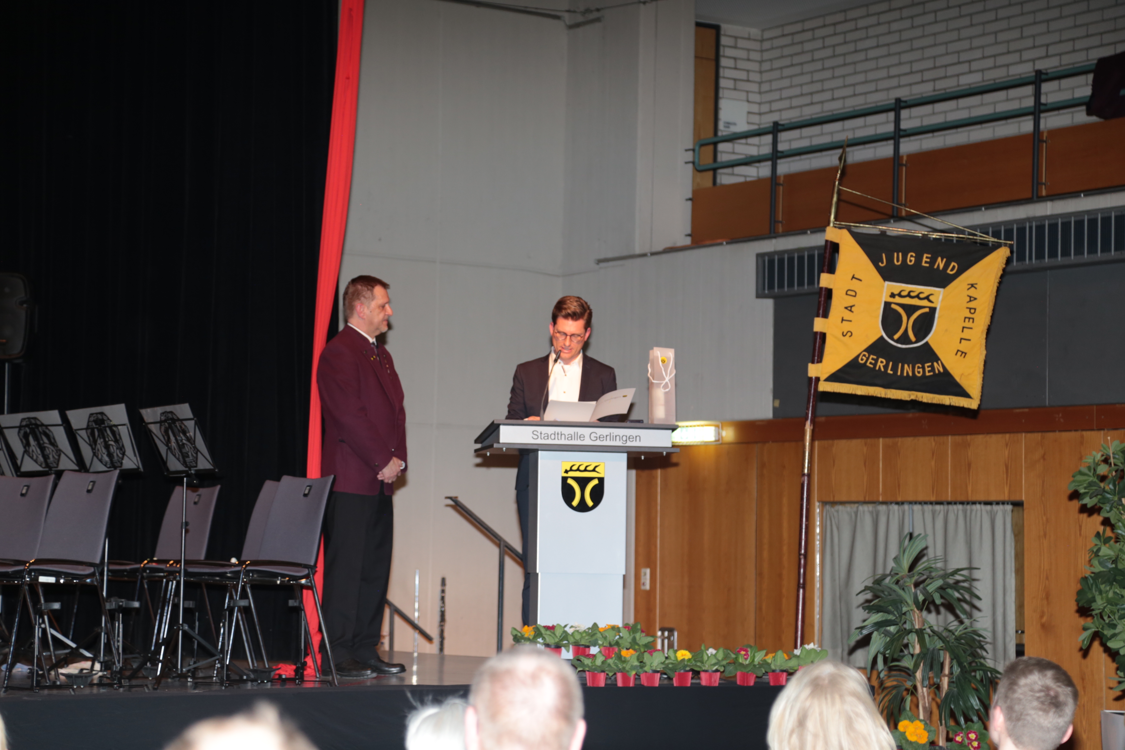 Beim Frühjahrskonzert vor einem Jahr musste der 1. Vorsitzende Matthias Widmann in seiner Eröffnungsrede berichten, dass der bisherige Stadtmusikdirektor Daxi Pan mit diesem Konzert verabschiedet wird. Ein Jahr später steht mit Maximilian Broichhaus ein neuer Dirigent an der Spitze der Jugend‑und Stadtkapelle. Max ist seit September 2023 musikalischer Leiter beider Kapellen und hat die letzten Monate für eine intensive Konzertvorbereitung mit frischen Ideen genutzt.