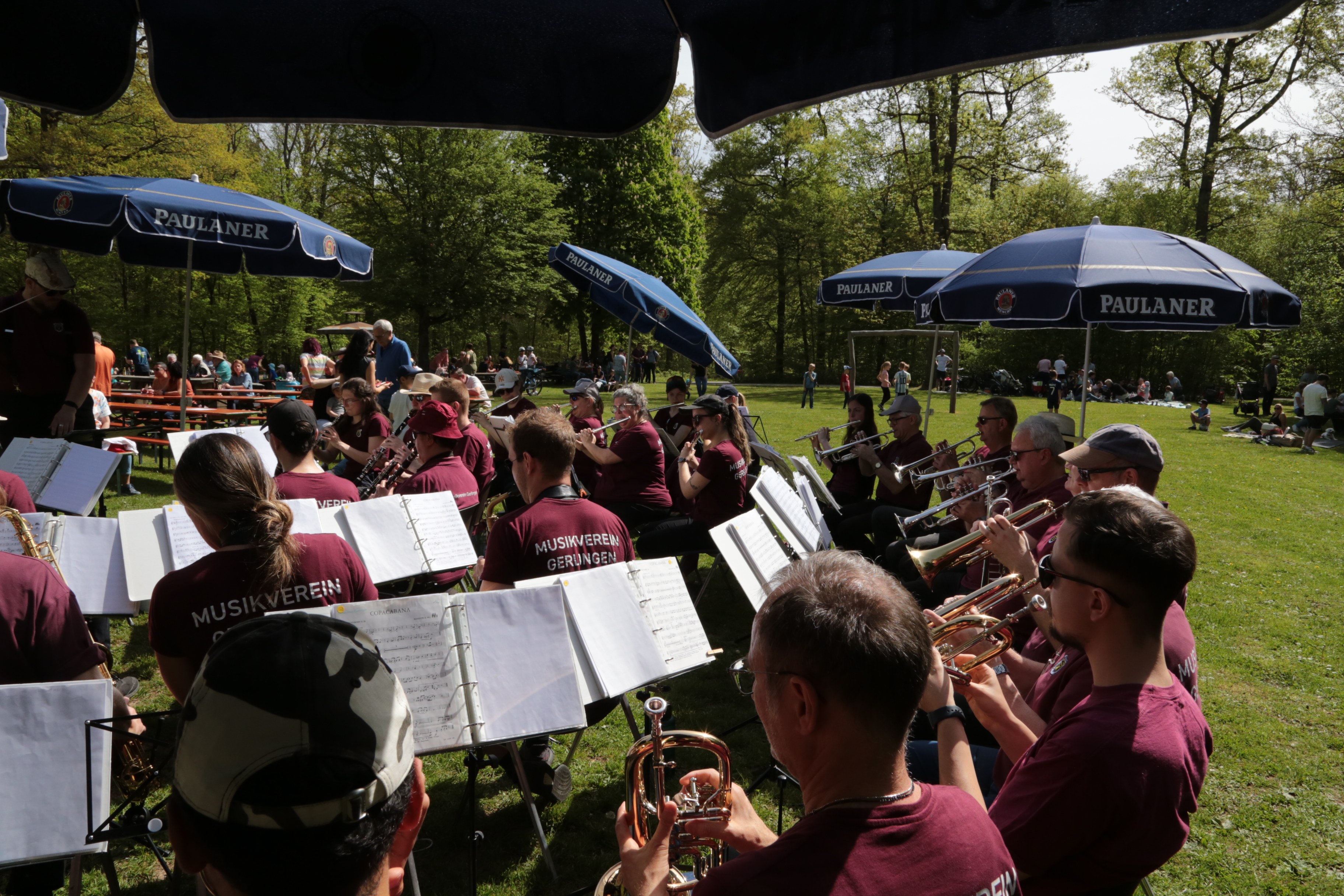 Wer hätte vor einer Woche tatsächlich daran geglaubt, dass er unter Umständen mit einem Sonnenbrand vom Waldfest nach Hause kommt? Temperaturen von gefühlt 30 Grad sind doch noch unüblich für den 1. Mai – zumindest wenn man auf das Wetter der letzten Jahre zurück blickt. Um Punkt 11 Uhr eröffnete dieses Jahr wieder die Stadtkapelle den Frühschoppen. Unter der musikalischen Leitung von Maximilian Broichhaus wurde ein Querschnitt der unterschiedlichsten Musik geboten. Rockige Rhythmen, aber auch bekannte Melodien zum Mitsingen, ein Marsch oder eine Polka waren zu hören. Nach der Stadtkapelle ging es musikalisch mit der Jugendkapelle weiter. Die rund 30-köpfige Truppe hatte sichtlich Spaß und genoss den Auftritt. In dieser Zeit konnte sich die Stadtkapelle stärken. Das Essensangebot wird stetig erweitert und den Wünschen der Gäste angepasst. Oder hätten Sie erwartet, dass neben den „klassischen“ Würstchen auch ein vegetarisches Halloumi-Gericht bzw. Pulled Pork im Brötchen angeboten werden? Vielen Dank an dieser Stelle an das Wirtschaftsteam um Miriam Storr und Tini, die mit Ihren fleißigen Helfern einen super Job gemacht haben. Wie jedes Jahr, erfolgt der musikalische Abschluss wieder durch die Stadtkapelle. Am Ende des Auftritts waren sich alle einig: Das war mal wieder ein schönes Waldfest.