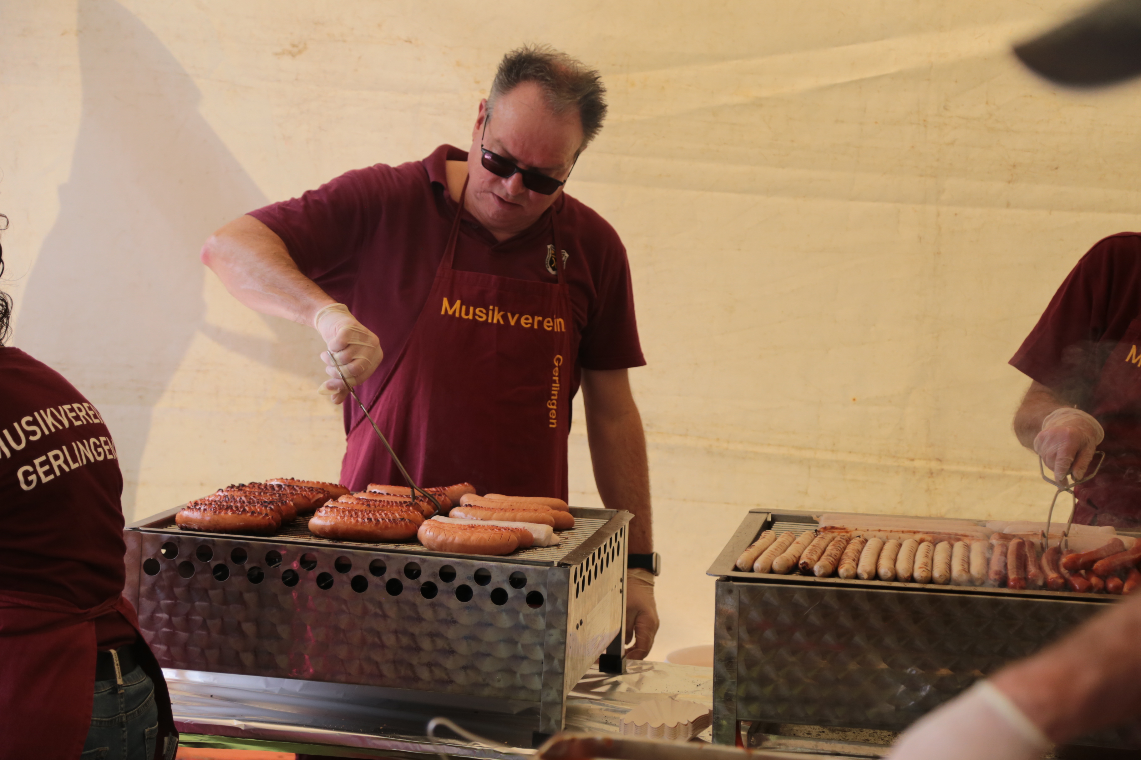 Im Anschluss an den Auftritt gab es von der Sportvereinigung noch ein leckeres Mittagessen mit einem passenden, kühlen Getränk dazu. Herzlichen Dank für die herrliche Bewirtung und für die musikalische Gestaltung des Frühschoppens. Wir kommen gerne wieder – es war ein toller Sonntag im Zelt.