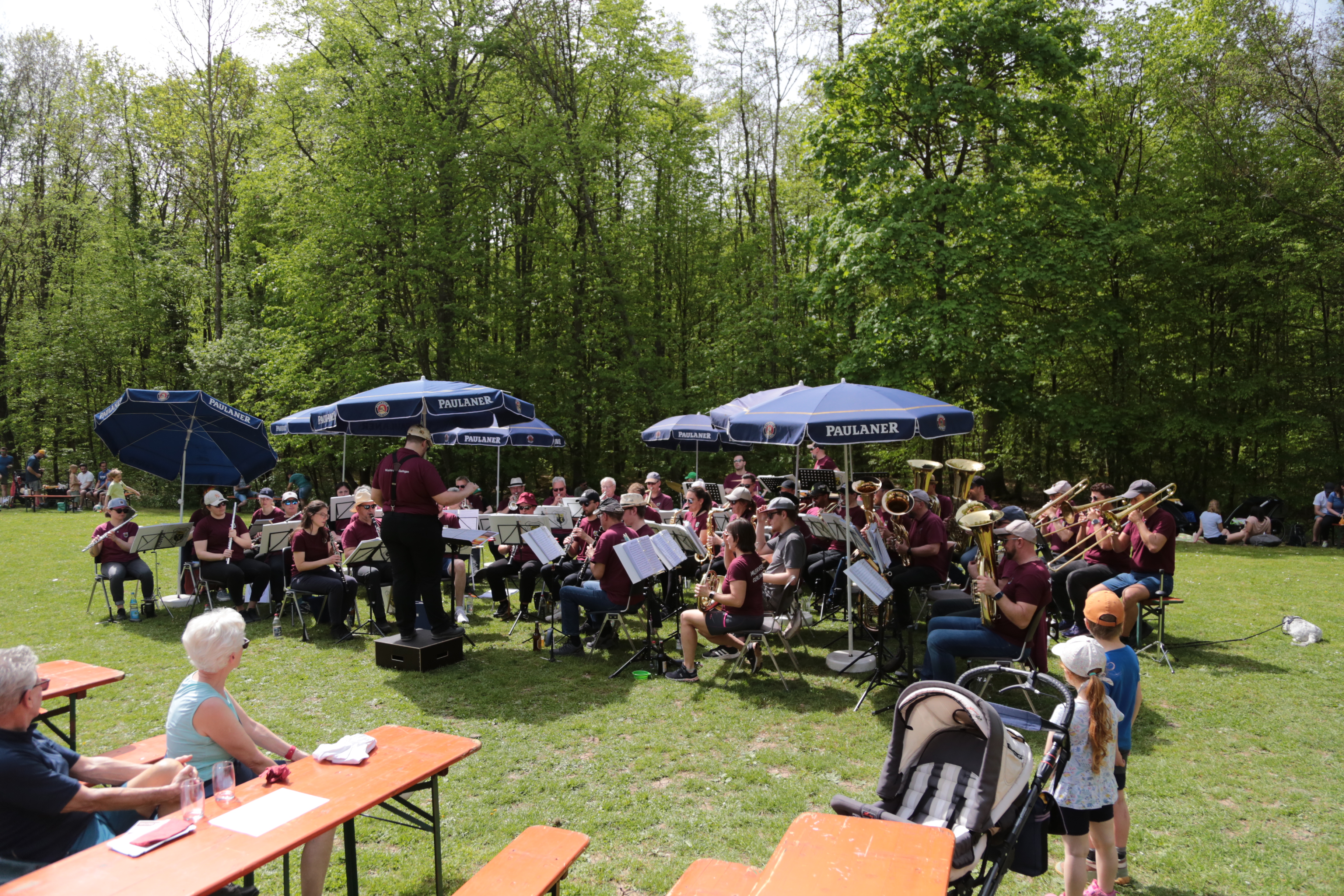 Wer hätte vor einer Woche tatsächlich daran geglaubt, dass er unter Umständen mit einem Sonnenbrand vom Waldfest nach Hause kommt? Temperaturen von gefühlt 30 Grad sind doch noch unüblich für den 1. Mai – zumindest wenn man auf das Wetter der letzten Jahre zurück blickt. Um Punkt 11 Uhr eröffnete dieses Jahr wieder die Stadtkapelle den Frühschoppen. Unter der musikalischen Leitung von Maximilian Broichhaus wurde ein Querschnitt der unterschiedlichsten Musik geboten. Rockige Rhythmen, aber auch bekannte Melodien zum Mitsingen, ein Marsch oder eine Polka waren zu hören. Nach der Stadtkapelle ging es musikalisch mit der Jugendkapelle weiter. Die rund 30-köpfige Truppe hatte sichtlich Spaß und genoss den Auftritt. In dieser Zeit konnte sich die Stadtkapelle stärken. Das Essensangebot wird stetig erweitert und den Wünschen der Gäste angepasst. Oder hätten Sie erwartet, dass neben den „klassischen“ Würstchen auch ein vegetarisches Halloumi-Gericht bzw. Pulled Pork im Brötchen angeboten werden? Vielen Dank an dieser Stelle an das Wirtschaftsteam um Miriam Storr und Tini, die mit Ihren fleißigen Helfern einen super Job gemacht haben. Wie jedes Jahr, erfolgt der musikalische Abschluss wieder durch die Stadtkapelle. Am Ende des Auftritts waren sich alle einig: Das war mal wieder ein schönes Waldfest.