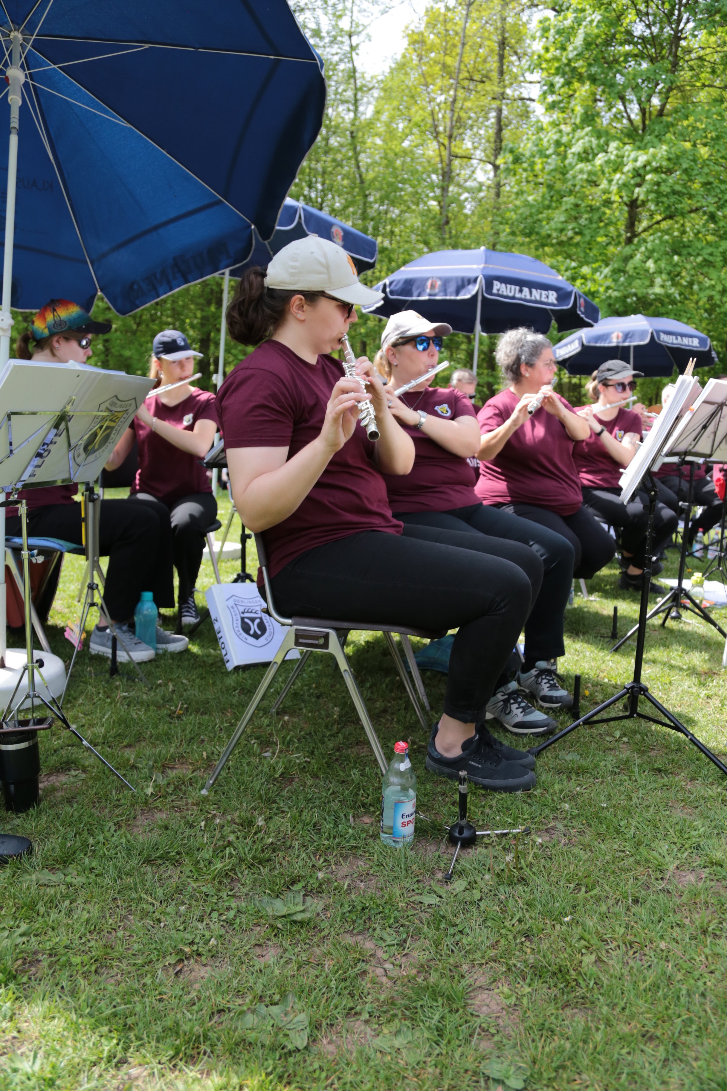 Wer hätte vor einer Woche tatsächlich daran geglaubt, dass er unter Umständen mit einem Sonnenbrand vom Waldfest nach Hause kommt? Temperaturen von gefühlt 30 Grad sind doch noch unüblich für den 1. Mai – zumindest wenn man auf das Wetter der letzten Jahre zurück blickt. Um Punkt 11 Uhr eröffnete dieses Jahr wieder die Stadtkapelle den Frühschoppen. Unter der musikalischen Leitung von Maximilian Broichhaus wurde ein Querschnitt der unterschiedlichsten Musik geboten. Rockige Rhythmen, aber auch bekannte Melodien zum Mitsingen, ein Marsch oder eine Polka waren zu hören. Nach der Stadtkapelle ging es musikalisch mit der Jugendkapelle weiter. Die rund 30-köpfige Truppe hatte sichtlich Spaß und genoss den Auftritt. In dieser Zeit konnte sich die Stadtkapelle stärken. Das Essensangebot wird stetig erweitert und den Wünschen der Gäste angepasst. Oder hätten Sie erwartet, dass neben den „klassischen“ Würstchen auch ein vegetarisches Halloumi-Gericht bzw. Pulled Pork im Brötchen angeboten werden? Vielen Dank an dieser Stelle an das Wirtschaftsteam um Miriam Storr und Tini, die mit Ihren fleißigen Helfern einen super Job gemacht haben. Wie jedes Jahr, erfolgt der musikalische Abschluss wieder durch die Stadtkapelle. Am Ende des Auftritts waren sich alle einig: Das war mal wieder ein schönes Waldfest.