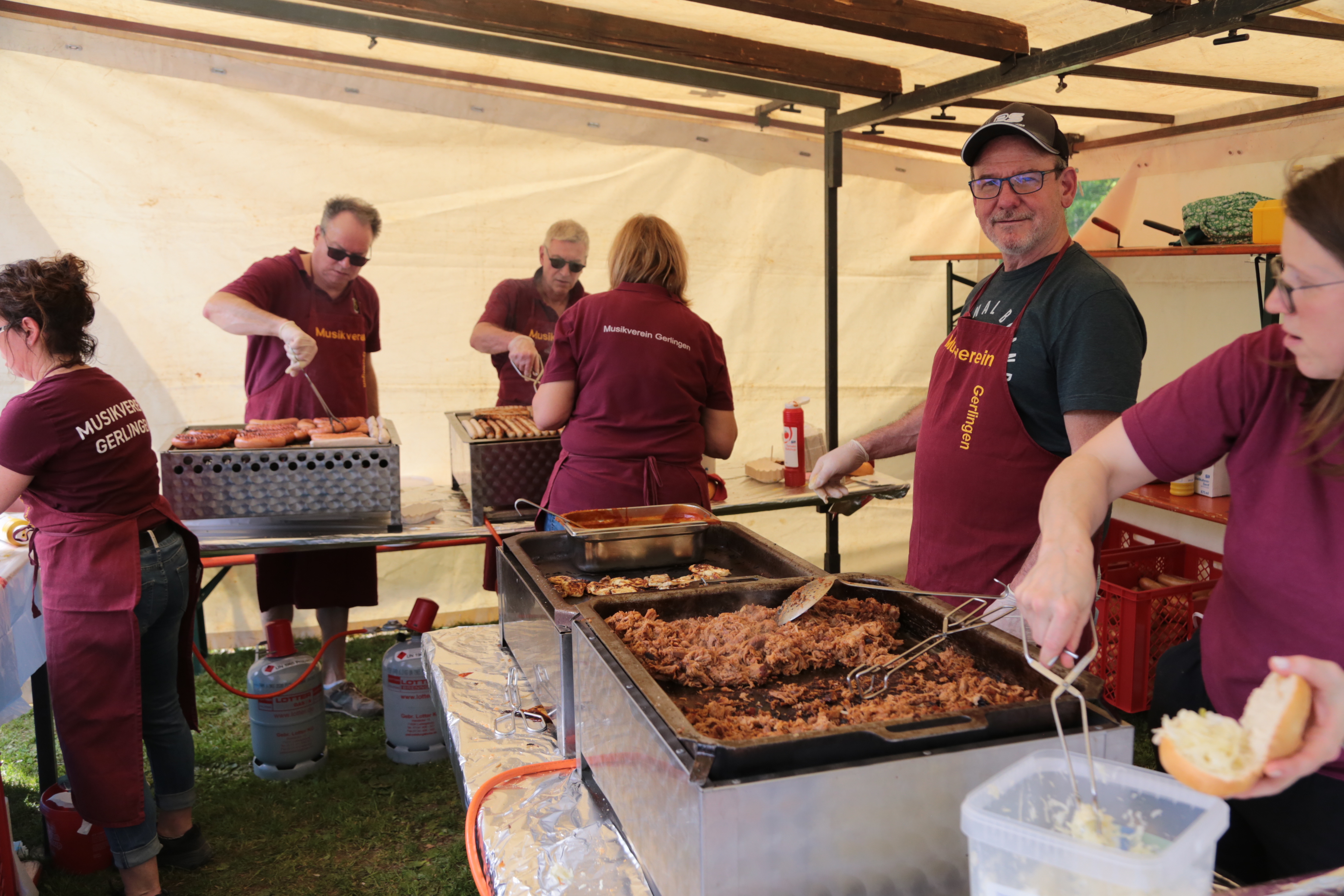 Im Anschluss an den Auftritt gab es von der Sportvereinigung noch ein leckeres Mittagessen mit einem passenden, kühlen Getränk dazu. Herzlichen Dank für die herrliche Bewirtung und für die musikalische Gestaltung des Frühschoppens. Wir kommen gerne wieder – es war ein toller Sonntag im Zelt.