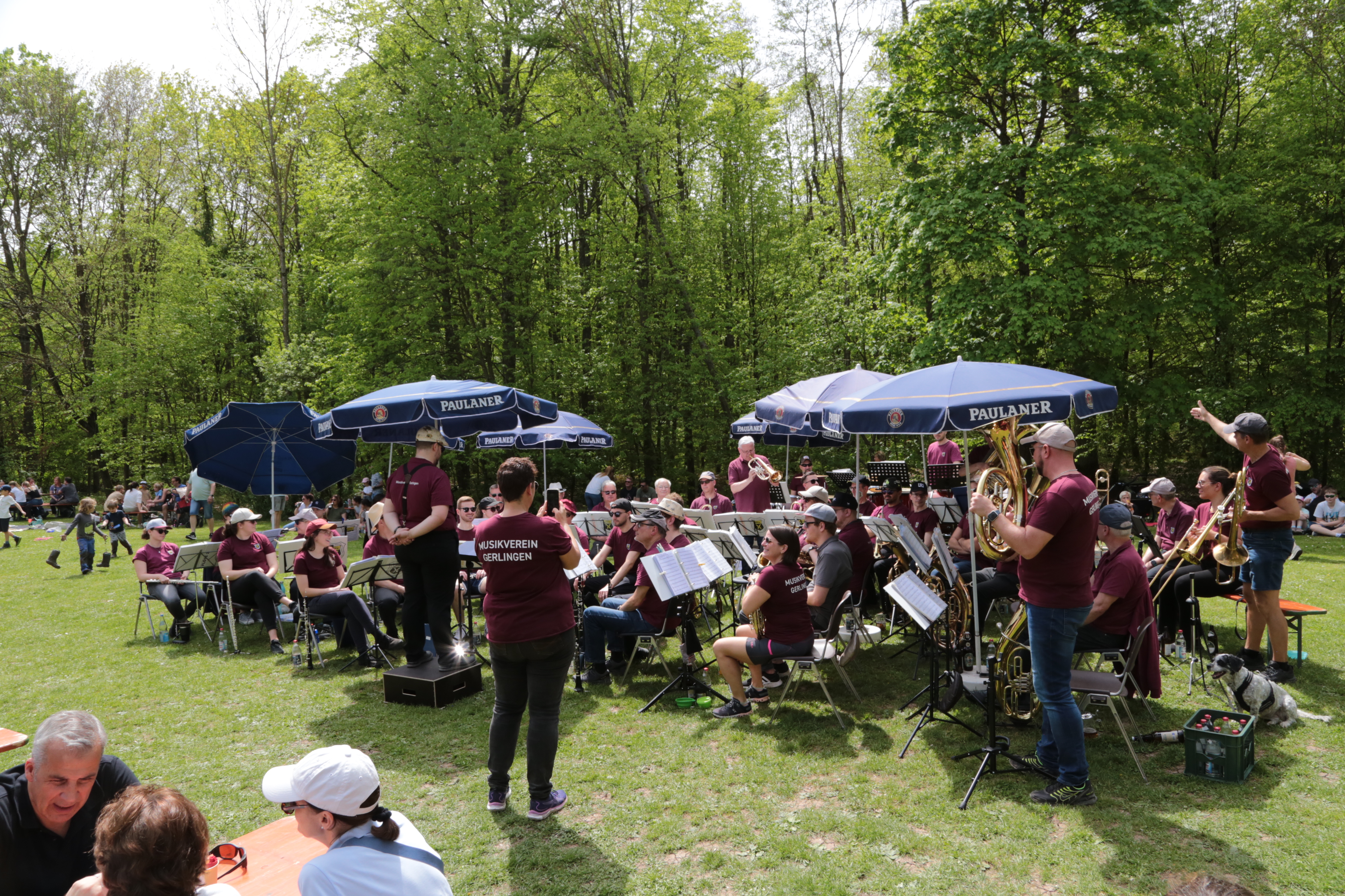 Wer hätte vor einer Woche tatsächlich daran geglaubt, dass er unter Umständen mit einem Sonnenbrand vom Waldfest nach Hause kommt? Temperaturen von gefühlt 30 Grad sind doch noch unüblich für den 1. Mai – zumindest wenn man auf das Wetter der letzten Jahre zurück blickt. Um Punkt 11 Uhr eröffnete dieses Jahr wieder die Stadtkapelle den Frühschoppen. Unter der musikalischen Leitung von Maximilian Broichhaus wurde ein Querschnitt der unterschiedlichsten Musik geboten. Rockige Rhythmen, aber auch bekannte Melodien zum Mitsingen, ein Marsch oder eine Polka waren zu hören. Nach der Stadtkapelle ging es musikalisch mit der Jugendkapelle weiter. Die rund 30-köpfige Truppe hatte sichtlich Spaß und genoss den Auftritt. In dieser Zeit konnte sich die Stadtkapelle stärken. Das Essensangebot wird stetig erweitert und den Wünschen der Gäste angepasst. Oder hätten Sie erwartet, dass neben den „klassischen“ Würstchen auch ein vegetarisches Halloumi-Gericht bzw. Pulled Pork im Brötchen angeboten werden? Vielen Dank an dieser Stelle an das Wirtschaftsteam um Miriam Storr und Tini, die mit Ihren fleißigen Helfern einen super Job gemacht haben. Wie jedes Jahr, erfolgt der musikalische Abschluss wieder durch die Stadtkapelle. Am Ende des Auftritts waren sich alle einig: Das war mal wieder ein schönes Waldfest.
