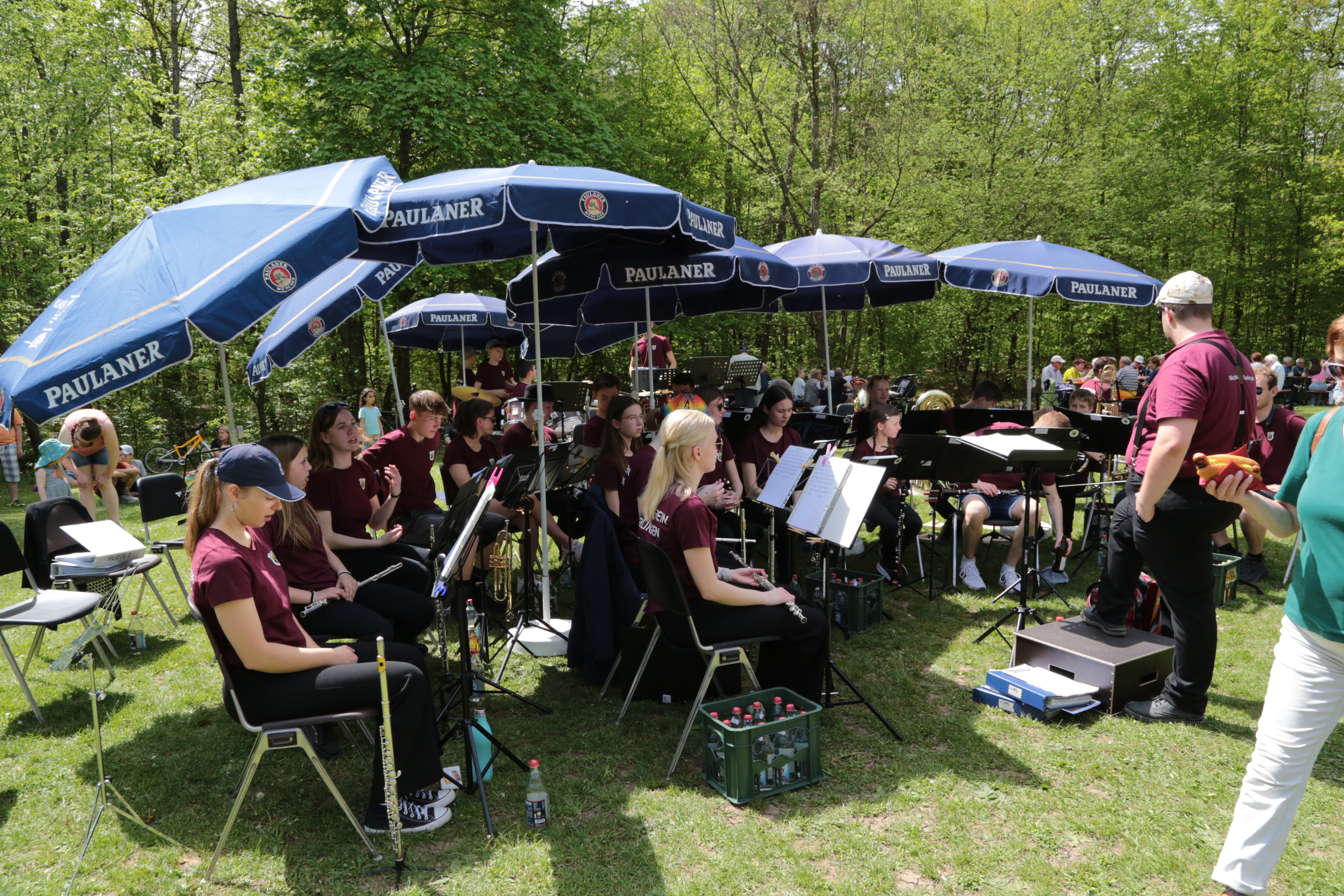 Wer hätte vor einer Woche tatsächlich daran geglaubt, dass er unter Umständen mit einem Sonnenbrand vom Waldfest nach Hause kommt? Temperaturen von gefühlt 30 Grad sind doch noch unüblich für den 1. Mai – zumindest wenn man auf das Wetter der letzten Jahre zurück blickt. Um Punkt 11 Uhr eröffnete dieses Jahr wieder die Stadtkapelle den Frühschoppen. Unter der musikalischen Leitung von Maximilian Broichhaus wurde ein Querschnitt der unterschiedlichsten Musik geboten. Rockige Rhythmen, aber auch bekannte Melodien zum Mitsingen, ein Marsch oder eine Polka waren zu hören. Nach der Stadtkapelle ging es musikalisch mit der Jugendkapelle weiter. Die rund 30-köpfige Truppe hatte sichtlich Spaß und genoss den Auftritt. In dieser Zeit konnte sich die Stadtkapelle stärken. Das Essensangebot wird stetig erweitert und den Wünschen der Gäste angepasst. Oder hätten Sie erwartet, dass neben den „klassischen“ Würstchen auch ein vegetarisches Halloumi-Gericht bzw. Pulled Pork im Brötchen angeboten werden? Vielen Dank an dieser Stelle an das Wirtschaftsteam um Miriam Storr und Tini, die mit Ihren fleißigen Helfern einen super Job gemacht haben. Wie jedes Jahr, erfolgt der musikalische Abschluss wieder durch die Stadtkapelle. Am Ende des Auftritts waren sich alle einig: Das war mal wieder ein schönes Waldfest.