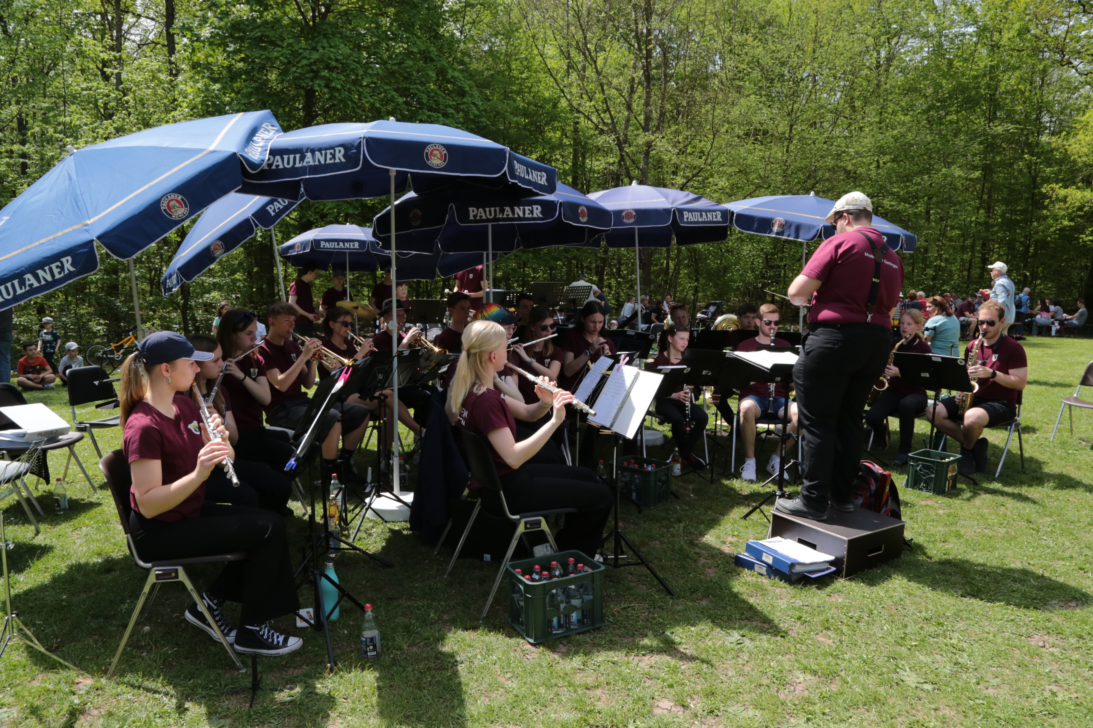Wer hätte vor einer Woche tatsächlich daran geglaubt, dass er unter Umständen mit einem Sonnenbrand vom Waldfest nach Hause kommt? Temperaturen von gefühlt 30 Grad sind doch noch unüblich für den 1. Mai – zumindest wenn man auf das Wetter der letzten Jahre zurück blickt. Um Punkt 11 Uhr eröffnete dieses Jahr wieder die Stadtkapelle den Frühschoppen. Unter der musikalischen Leitung von Maximilian Broichhaus wurde ein Querschnitt der unterschiedlichsten Musik geboten. Rockige Rhythmen, aber auch bekannte Melodien zum Mitsingen, ein Marsch oder eine Polka waren zu hören. Nach der Stadtkapelle ging es musikalisch mit der Jugendkapelle weiter. Die rund 30-köpfige Truppe hatte sichtlich Spaß und genoss den Auftritt. In dieser Zeit konnte sich die Stadtkapelle stärken. Das Essensangebot wird stetig erweitert und den Wünschen der Gäste angepasst. Oder hätten Sie erwartet, dass neben den „klassischen“ Würstchen auch ein vegetarisches Halloumi-Gericht bzw. Pulled Pork im Brötchen angeboten werden? Vielen Dank an dieser Stelle an das Wirtschaftsteam um Miriam Storr und Tini, die mit Ihren fleißigen Helfern einen super Job gemacht haben. Wie jedes Jahr, erfolgt der musikalische Abschluss wieder durch die Stadtkapelle. Am Ende des Auftritts waren sich alle einig: Das war mal wieder ein schönes Waldfest.