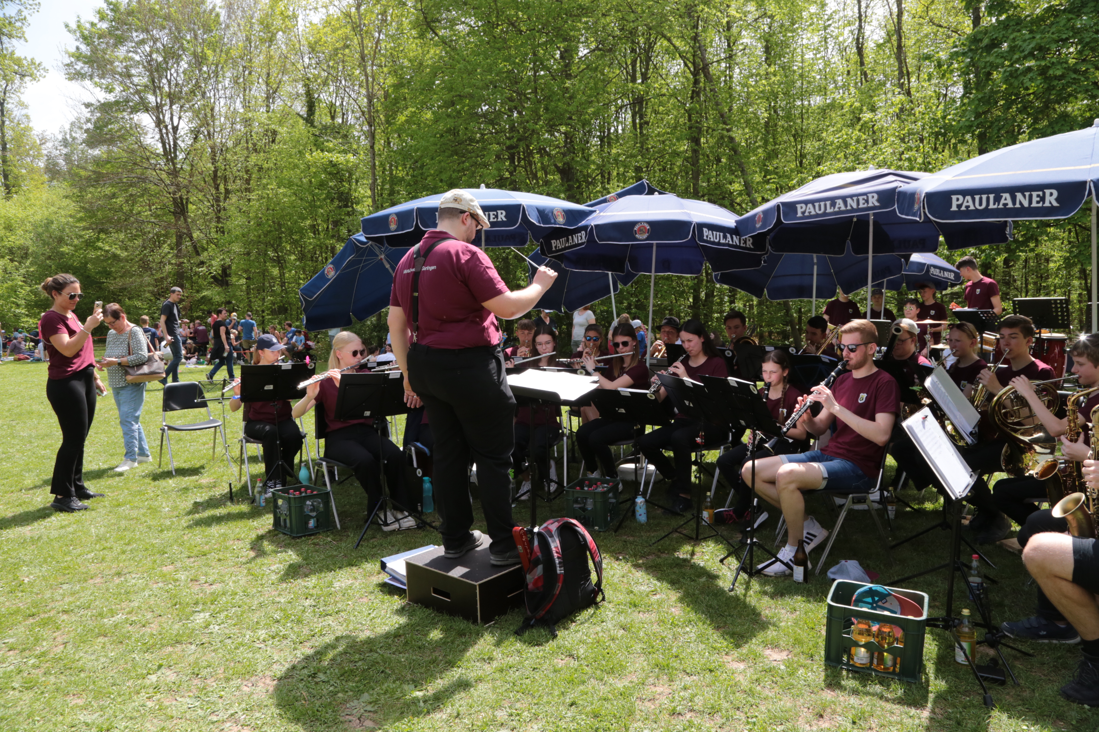 Wer hätte vor einer Woche tatsächlich daran geglaubt, dass er unter Umständen mit einem Sonnenbrand vom Waldfest nach Hause kommt? Temperaturen von gefühlt 30 Grad sind doch noch unüblich für den 1. Mai – zumindest wenn man auf das Wetter der letzten Jahre zurück blickt. Um Punkt 11 Uhr eröffnete dieses Jahr wieder die Stadtkapelle den Frühschoppen. Unter der musikalischen Leitung von Maximilian Broichhaus wurde ein Querschnitt der unterschiedlichsten Musik geboten. Rockige Rhythmen, aber auch bekannte Melodien zum Mitsingen, ein Marsch oder eine Polka waren zu hören. Nach der Stadtkapelle ging es musikalisch mit der Jugendkapelle weiter. Die rund 30-köpfige Truppe hatte sichtlich Spaß und genoss den Auftritt. In dieser Zeit konnte sich die Stadtkapelle stärken. Das Essensangebot wird stetig erweitert und den Wünschen der Gäste angepasst. Oder hätten Sie erwartet, dass neben den „klassischen“ Würstchen auch ein vegetarisches Halloumi-Gericht bzw. Pulled Pork im Brötchen angeboten werden? Vielen Dank an dieser Stelle an das Wirtschaftsteam um Miriam Storr und Tini, die mit Ihren fleißigen Helfern einen super Job gemacht haben. Wie jedes Jahr, erfolgt der musikalische Abschluss wieder durch die Stadtkapelle. Am Ende des Auftritts waren sich alle einig: Das war mal wieder ein schönes Waldfest.