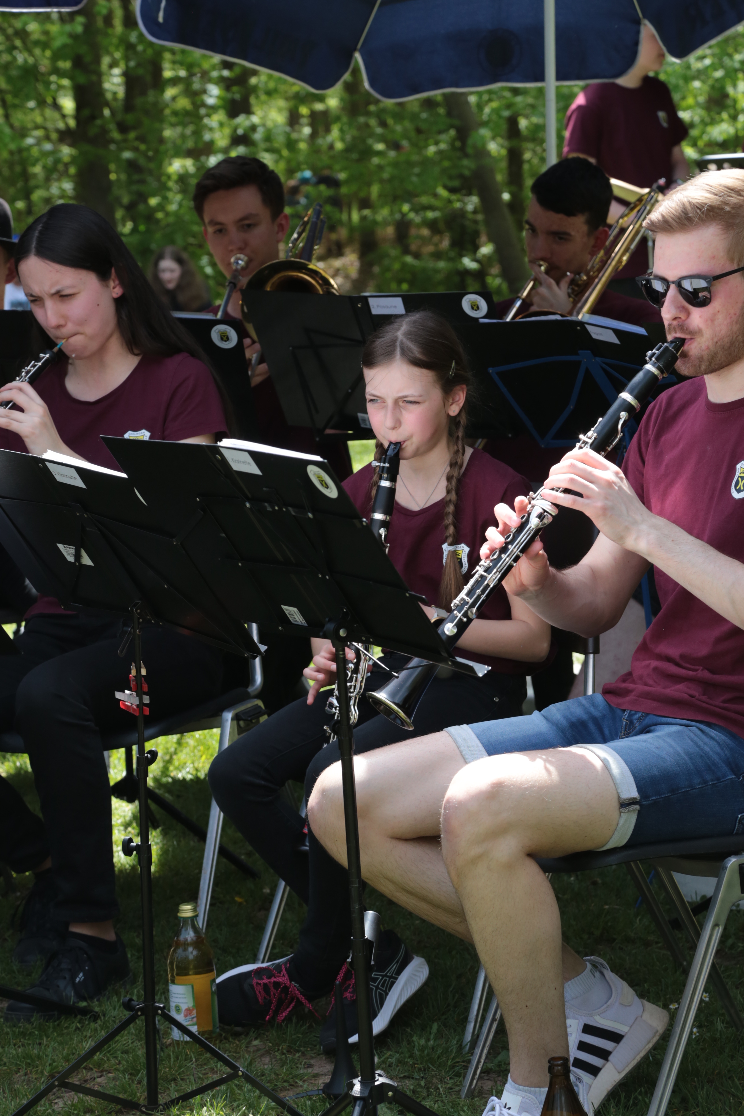 Wer hätte vor einer Woche tatsächlich daran geglaubt, dass er unter Umständen mit einem Sonnenbrand vom Waldfest nach Hause kommt? Temperaturen von gefühlt 30 Grad sind doch noch unüblich für den 1. Mai – zumindest wenn man auf das Wetter der letzten Jahre zurück blickt. Um Punkt 11 Uhr eröffnete dieses Jahr wieder die Stadtkapelle den Frühschoppen. Unter der musikalischen Leitung von Maximilian Broichhaus wurde ein Querschnitt der unterschiedlichsten Musik geboten. Rockige Rhythmen, aber auch bekannte Melodien zum Mitsingen, ein Marsch oder eine Polka waren zu hören. Nach der Stadtkapelle ging es musikalisch mit der Jugendkapelle weiter. Die rund 30-köpfige Truppe hatte sichtlich Spaß und genoss den Auftritt. In dieser Zeit konnte sich die Stadtkapelle stärken. Das Essensangebot wird stetig erweitert und den Wünschen der Gäste angepasst. Oder hätten Sie erwartet, dass neben den „klassischen“ Würstchen auch ein vegetarisches Halloumi-Gericht bzw. Pulled Pork im Brötchen angeboten werden? Vielen Dank an dieser Stelle an das Wirtschaftsteam um Miriam Storr und Tini, die mit Ihren fleißigen Helfern einen super Job gemacht haben. Wie jedes Jahr, erfolgt der musikalische Abschluss wieder durch die Stadtkapelle. Am Ende des Auftritts waren sich alle einig: Das war mal wieder ein schönes Waldfest.