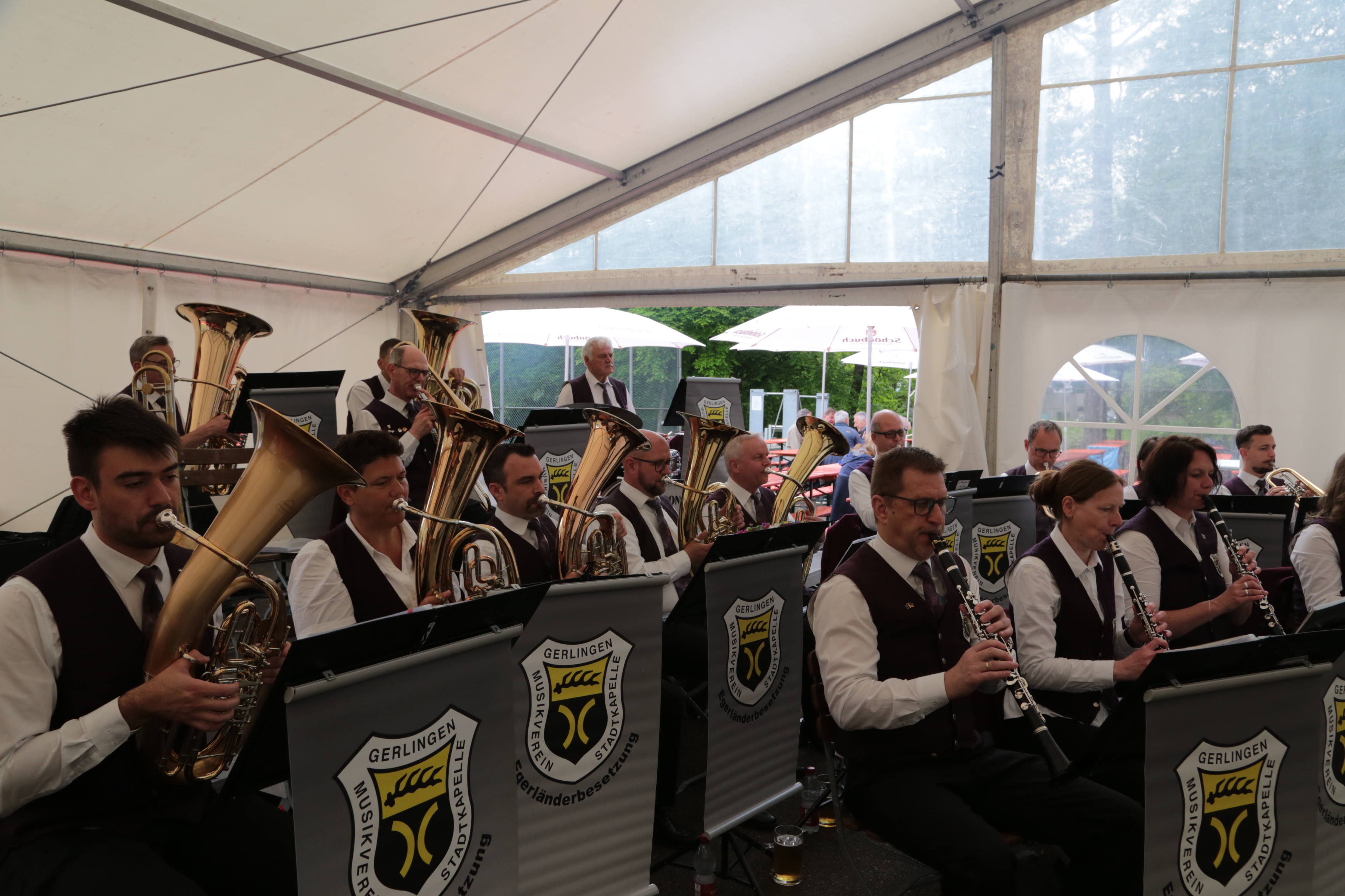 Am Sonntag, 5. Mai spielte die Egerländer Besetzung des Musikverein Gerlingens zum Frühschoppen beim Feuerbacher Göckelesfest auf. In drei Stunden wurden abwechselnd böhmische Blasmusik, moderne Arrangements und solistische Stücke präsentiert. Unser musikalischer Leiter Peter Gerl sorgte so für ein abwechselndes Programm, bei dem auch das ein oder andere Gesangsstück wie „Auf der Vogelwiese“ auf der Setlist stand. Speziell die solistischen Stücke wie „My Way“ oder eine moderne Version von „Hey Jude“ präsentiert kamen besonders gut beim Publikum an. Letzteres wurde von unserem Posaunisten Hermann Röser neu arrangiert, der auch das Posaunensolo übernommen hat. Unvergessen auch „My Dream“, beim dem unser Trompeter Markus Grieb das Stück einfach mal auswendig spielt.