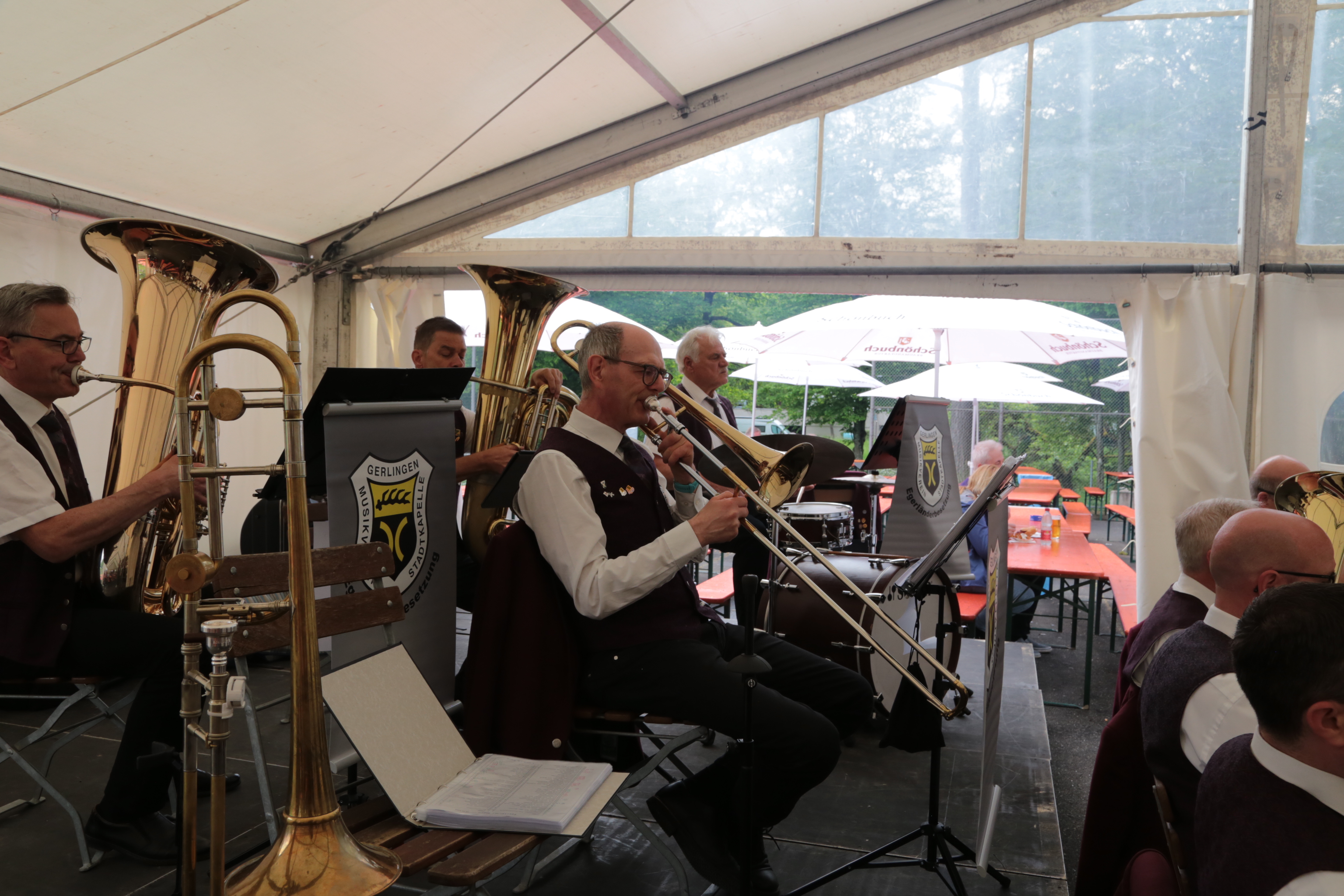 Am Sonntag, 5. Mai spielte die Egerländer Besetzung des Musikverein Gerlingens zum Frühschoppen beim Feuerbacher Göckelesfest auf. In drei Stunden wurden abwechselnd böhmische Blasmusik, moderne Arrangements und solistische Stücke präsentiert. Unser musikalischer Leiter Peter Gerl sorgte so für ein abwechselndes Programm, bei dem auch das ein oder andere Gesangsstück wie „Auf der Vogelwiese“ auf der Setlist stand. Speziell die solistischen Stücke wie „My Way“ oder eine moderne Version von „Hey Jude“ präsentiert kamen besonders gut beim Publikum an. Letzteres wurde von unserem Posaunisten Hermann Röser neu arrangiert, der auch das Posaunensolo übernommen hat. Unvergessen auch „My Dream“, beim dem unser Trompeter Markus Grieb das Stück einfach mal auswendig spielt.