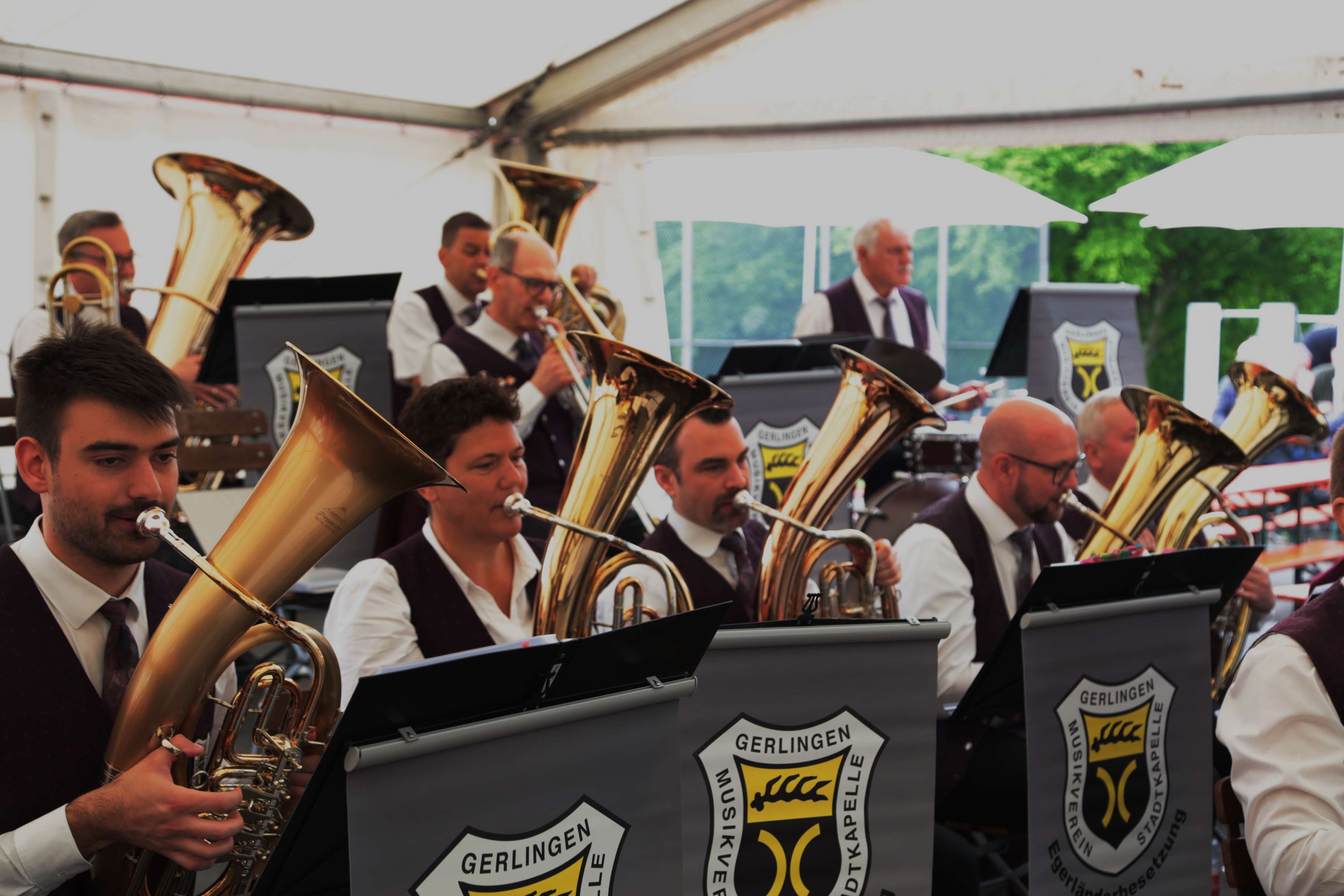 Am Sonntag, 5. Mai spielte die Egerländer Besetzung des Musikverein Gerlingens zum Frühschoppen beim Feuerbacher Göckelesfest auf. In drei Stunden wurden abwechselnd böhmische Blasmusik, moderne Arrangements und solistische Stücke präsentiert. Unser musikalischer Leiter Peter Gerl sorgte so für ein abwechselndes Programm, bei dem auch das ein oder andere Gesangsstück wie „Auf der Vogelwiese“ auf der Setlist stand. Speziell die solistischen Stücke wie „My Way“ oder eine moderne Version von „Hey Jude“ präsentiert kamen besonders gut beim Publikum an. Letzteres wurde von unserem Posaunisten Hermann Röser neu arrangiert, der auch das Posaunensolo übernommen hat. Unvergessen auch „My Dream“, beim dem unser Trompeter Markus Grieb das Stück einfach mal auswendig spielt.