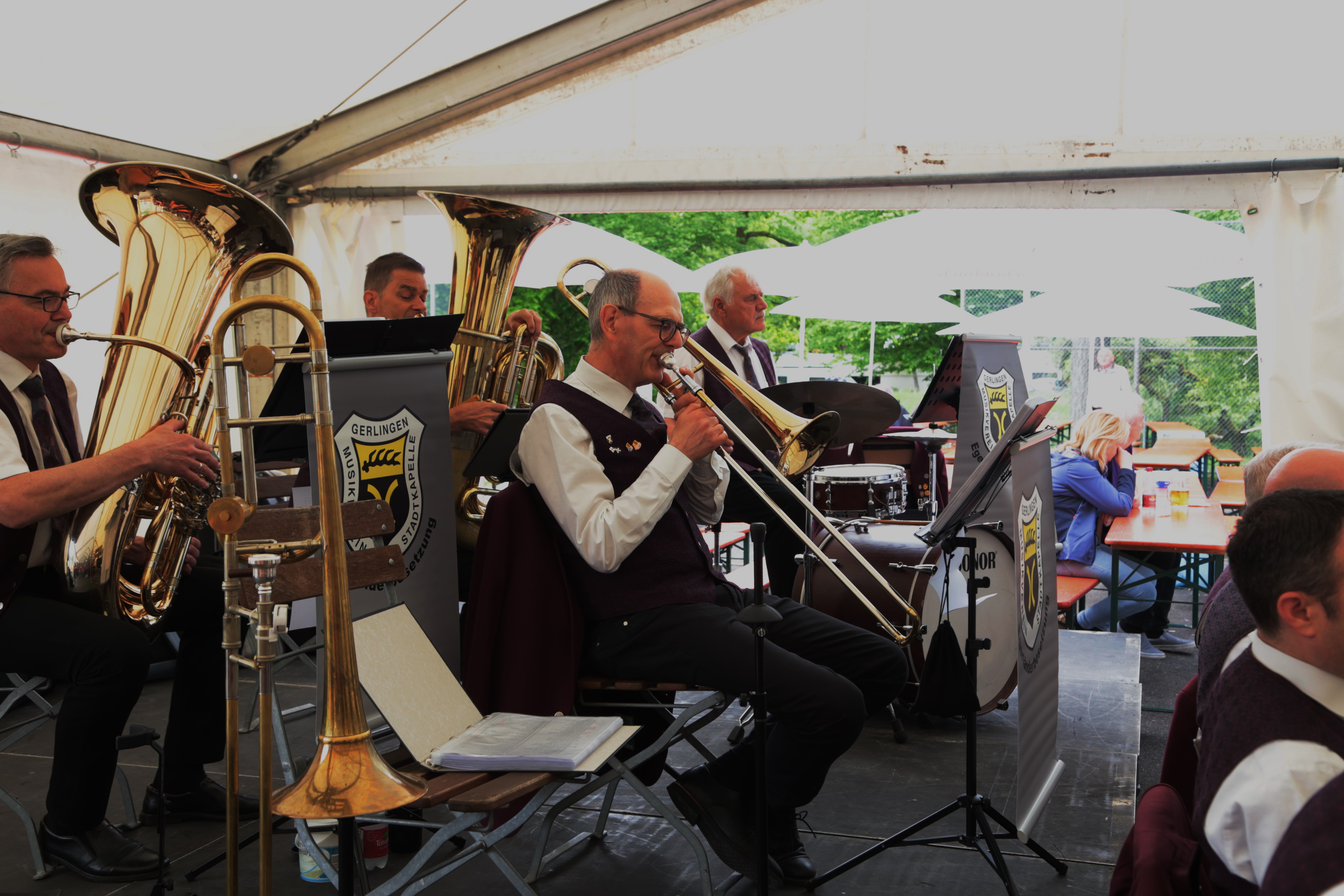 Am Sonntag, 5. Mai spielte die Egerländer Besetzung des Musikverein Gerlingens zum Frühschoppen beim Feuerbacher Göckelesfest auf. In drei Stunden wurden abwechselnd böhmische Blasmusik, moderne Arrangements und solistische Stücke präsentiert. Unser musikalischer Leiter Peter Gerl sorgte so für ein abwechselndes Programm, bei dem auch das ein oder andere Gesangsstück wie „Auf der Vogelwiese“ auf der Setlist stand. Speziell die solistischen Stücke wie „My Way“ oder eine moderne Version von „Hey Jude“ präsentiert kamen besonders gut beim Publikum an. Letzteres wurde von unserem Posaunisten Hermann Röser neu arrangiert, der auch das Posaunensolo übernommen hat. Unvergessen auch „My Dream“, beim dem unser Trompeter Markus Grieb das Stück einfach mal auswendig spielt.