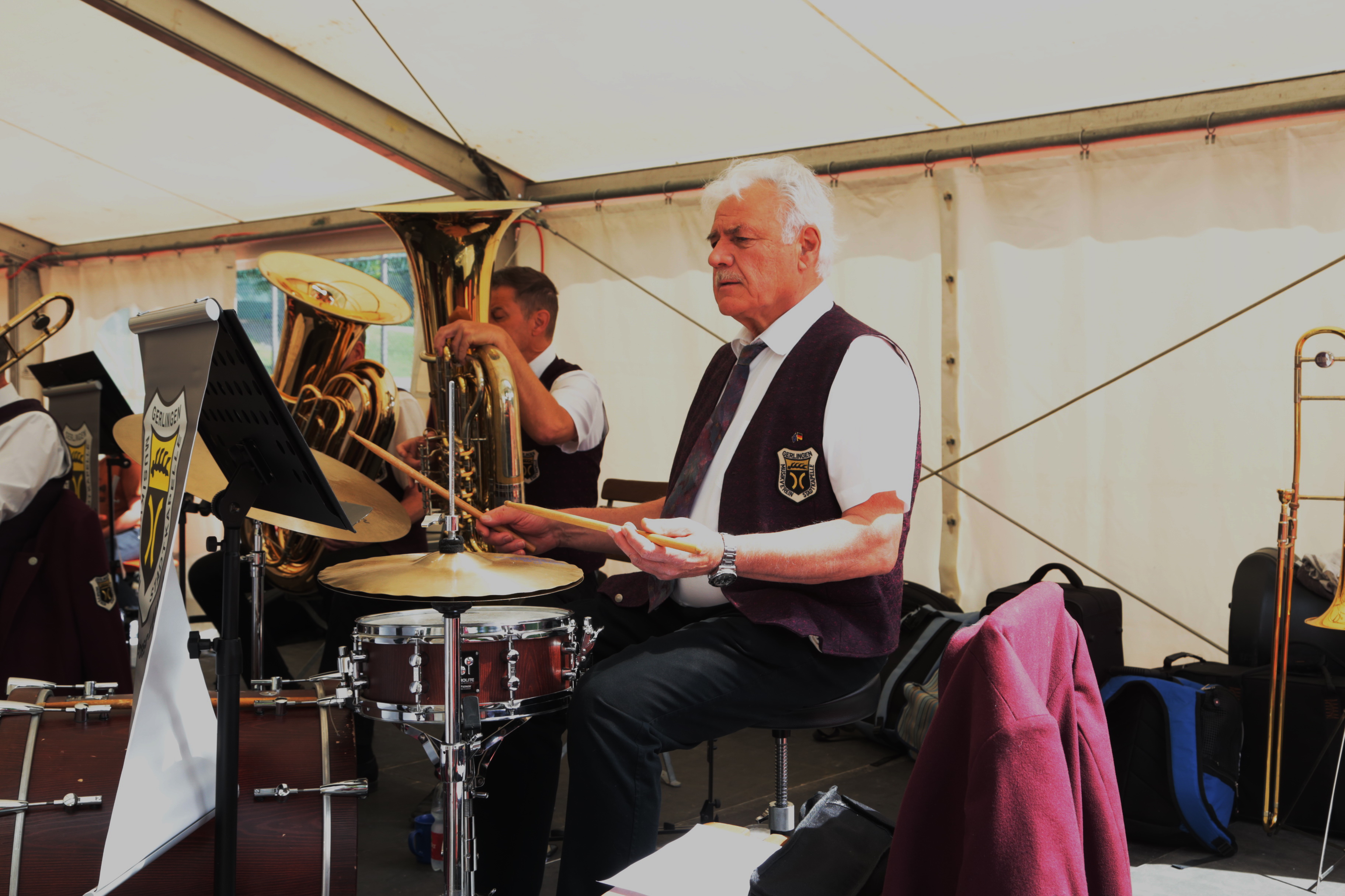 Am Sonntag, 5. Mai spielte die Egerländer Besetzung des Musikverein Gerlingens zum Frühschoppen beim Feuerbacher Göckelesfest auf. In drei Stunden wurden abwechselnd böhmische Blasmusik, moderne Arrangements und solistische Stücke präsentiert. Unser musikalischer Leiter Peter Gerl sorgte so für ein abwechselndes Programm, bei dem auch das ein oder andere Gesangsstück wie „Auf der Vogelwiese“ auf der Setlist stand. Speziell die solistischen Stücke wie „My Way“ oder eine moderne Version von „Hey Jude“ präsentiert kamen besonders gut beim Publikum an. Letzteres wurde von unserem Posaunisten Hermann Röser neu arrangiert, der auch das Posaunensolo übernommen hat. Unvergessen auch „My Dream“, beim dem unser Trompeter Markus Grieb das Stück einfach mal auswendig spielt.