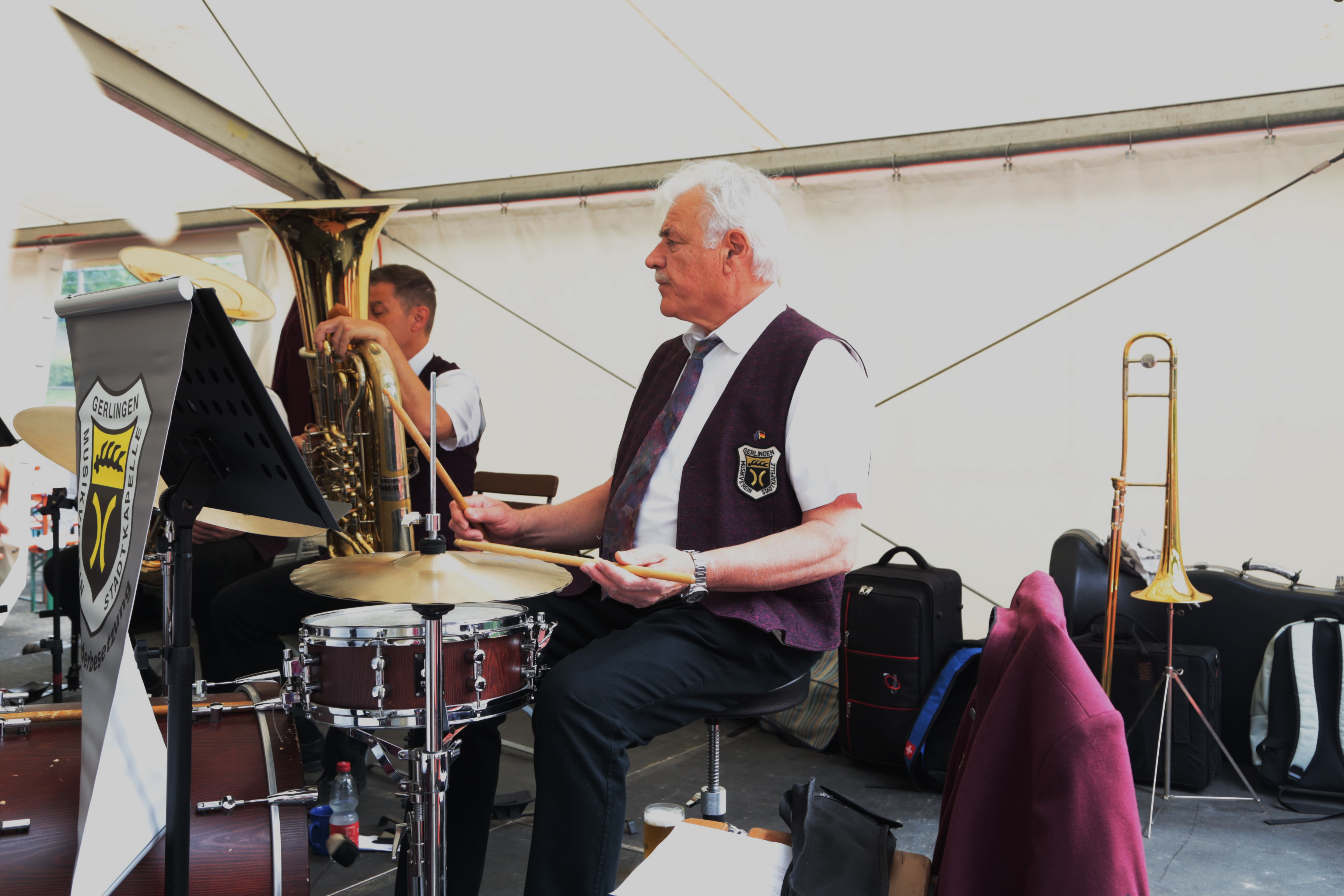 Im Anschluss an den Auftritt gab es von der Sportvereinigung noch ein leckeres Mittagessen mit einem passenden, kühlen Getränk dazu. Herzlichen Dank für die herrliche Bewirtung und für die musikalische Gestaltung des Frühschoppens. Wir kommen gerne wieder – es war ein toller Sonntag im Zelt.